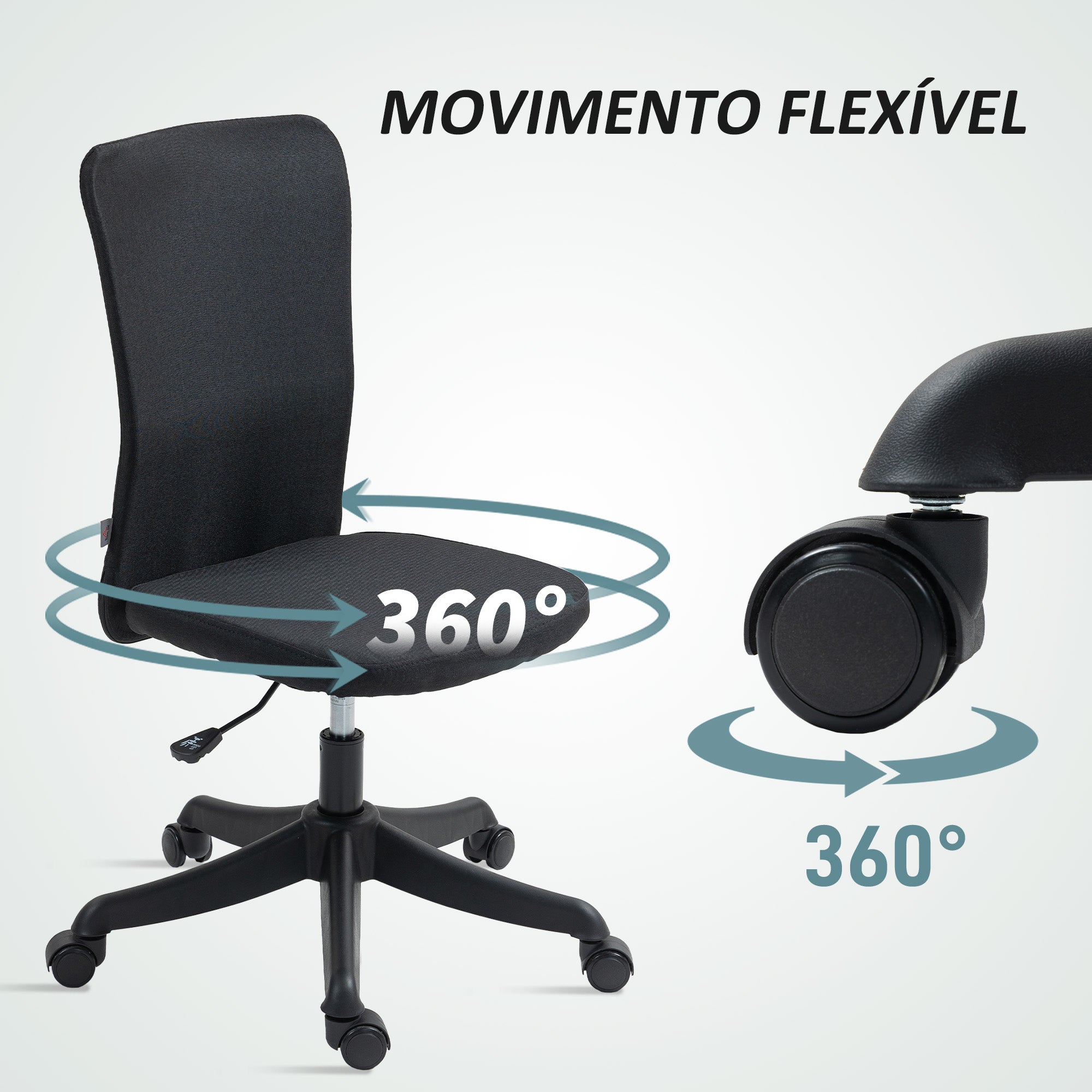 Cadeira de Escritório sem Apoio para os Braços Cadeira de Escritório Giratória Estofada em Linho Sintético com Altura Ajustável para Estudo Dormitório Tocador Carga 120 kg 53x43x85-93 cm Preto