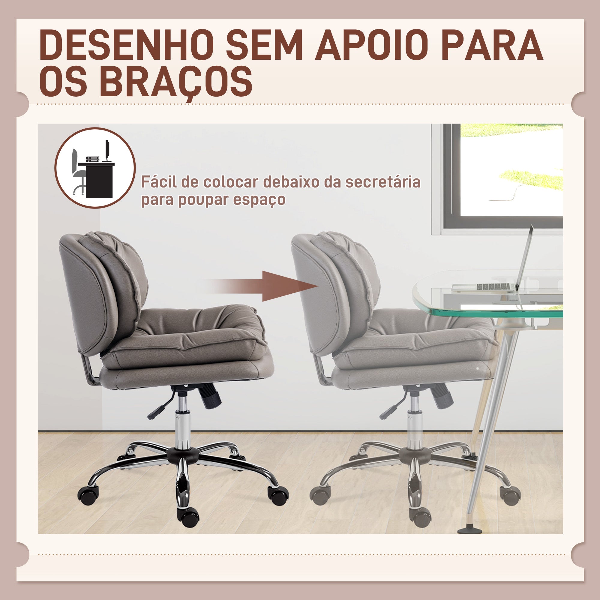 Cadeira de Escritório com Rodas Cadeira para Secretária com Função Inclinável Assento Amplo Sem Braços Duplo Acolchoamento Altura Ajustável 60x65x83-93 cm Cinza Escuro