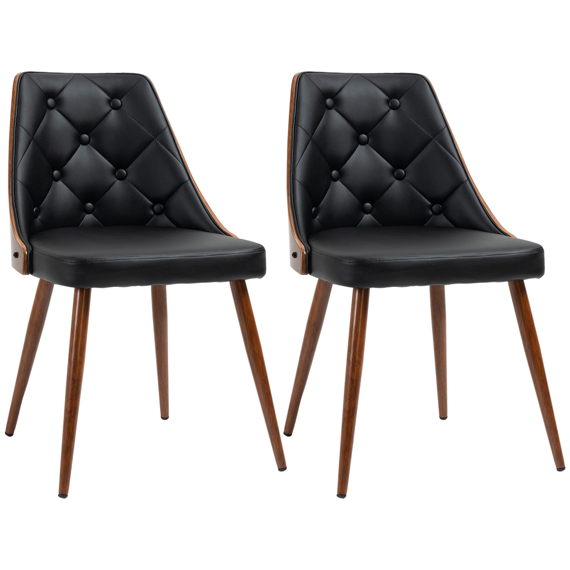 Conjunto de 2 Cadeiras de Sala de Jantar Cadeiras de Cozinha com Assento Estofado em PU e Pés de Madeira para Escritório Dormitório Carga Máxima 120kg 50,5x59x82cm Preto e Nogueira
