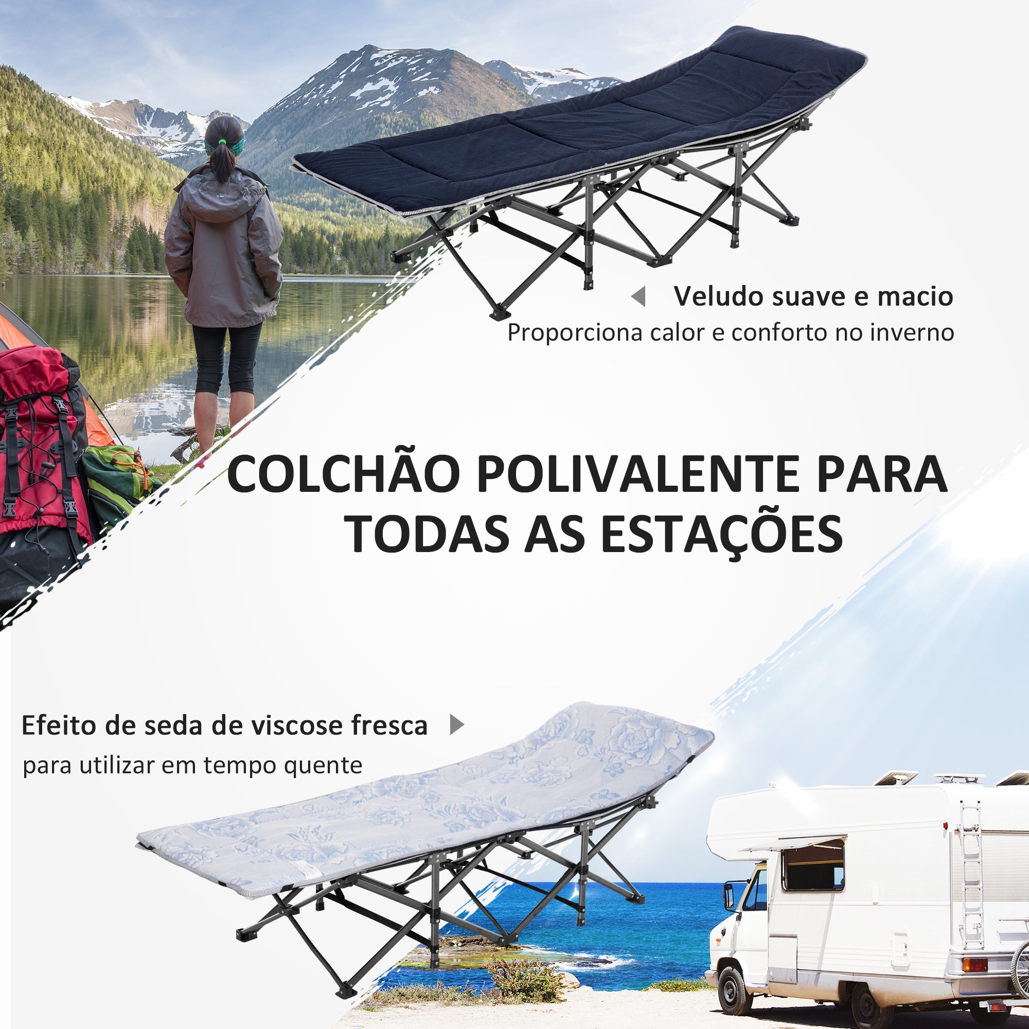 - Cama de campismo excelente para levar ao parque de campismo ou quando tem convidados em casa Possui uma estrutura de aço resistente e ideal para uma utilização prolongada O colchão 2 em 1 pode ser utilizado tanto em climas quentes quanto nos dias mais frios de inverno Possui uma almofada para um máximo de conforto Fácil de dobrar e com bolsa de transporte incluída Possui um bolso lateral ideal para colocar pequenos itens como telemóvel, chave, lanterna e muito mais Por ser elevado do solo permite uma melhor circulação do ar e mantém o utilizador afastado da humidade Requer uma fácil montagem