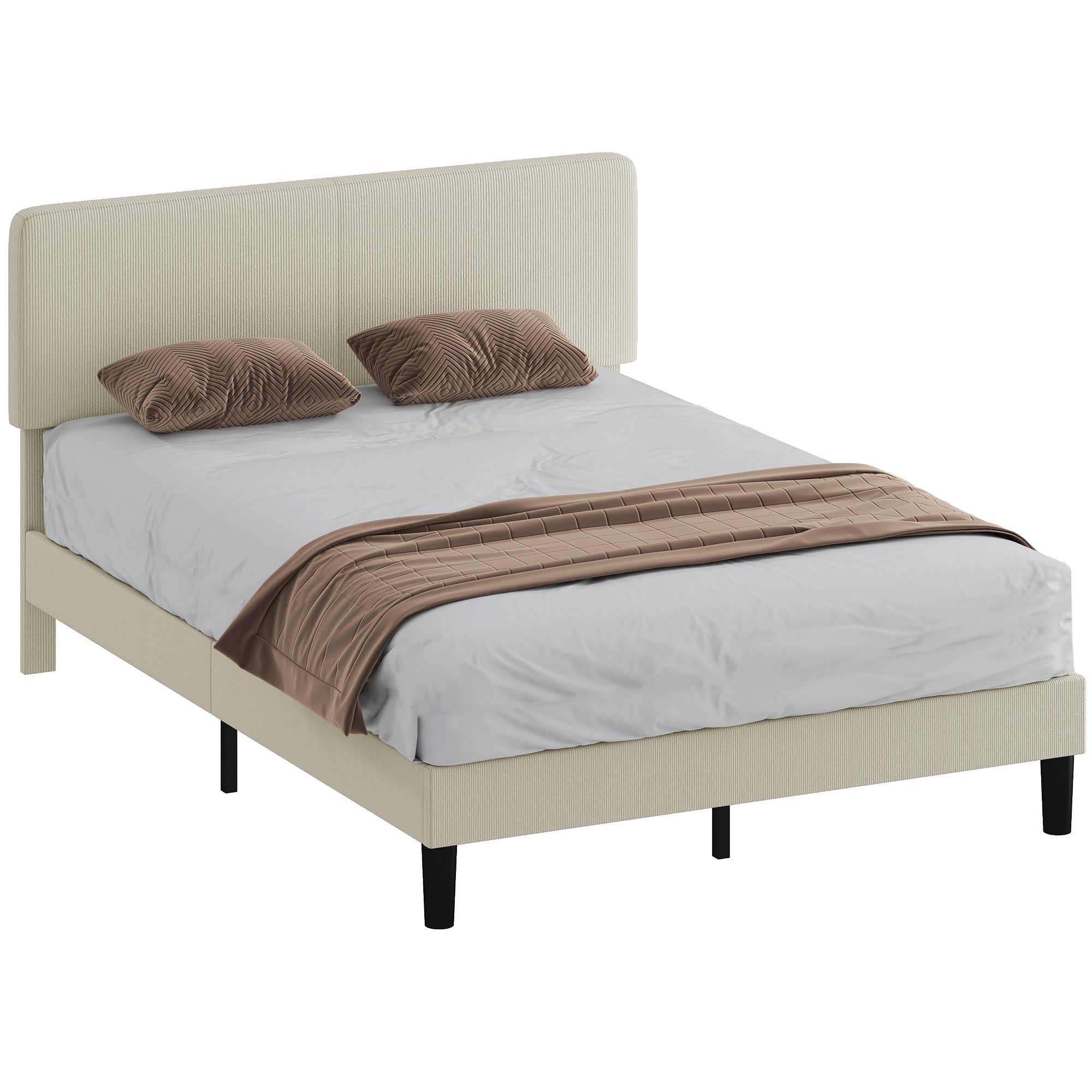 - MONTAGEM RÁPIDA E FÁCIL: Graças às suas peças claramente marcadas, instruções detalhadas e ripas já pré·montadas, pode montar rapidamente esta elegante cama, que adicionará um toque conforto ao seu quarto O pacote inclui: ? 1 x Estrutura de cama; ? 1 x Manual de instruções Esta cama de casal da HOMCOM funde conforto, firmeza e uma elegância subtil. A sua cabeceira estofada ajustável oferece três posições para se adaptar ao colchão e decoração, e a sua bombazina suave proporciona um toque quente e atraente. Apoiada em 12 ripas de madeira contraplacada e pernas de metal, esta base de cama tipo plataforma suporta até 363 kg, assegurando um repouso estável. Com 15 cm de altura livre para limpeza fácil e almofadas anti·ruído, promete noites serenas e cuidado simples