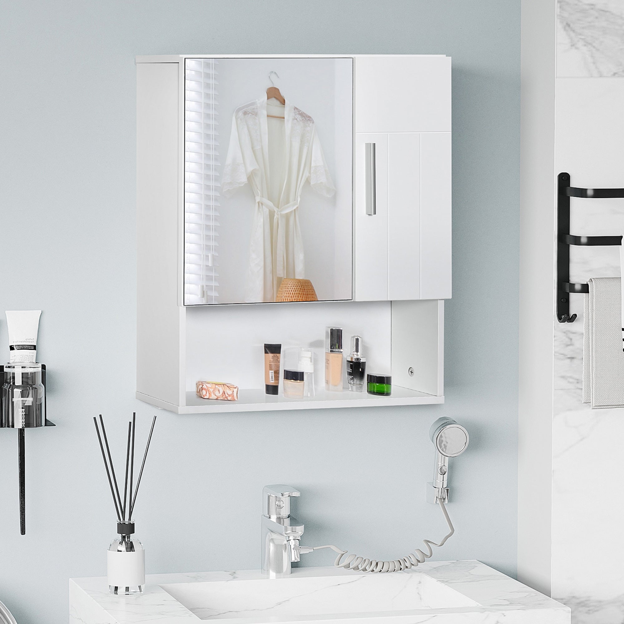 Armário Casa de Banho com Espelho Móvel Suspenso de Casa de Banho com 2 Portas e 2 Prateleiras Interiores Ajustáveis 54x15,2x55,3cm Branco