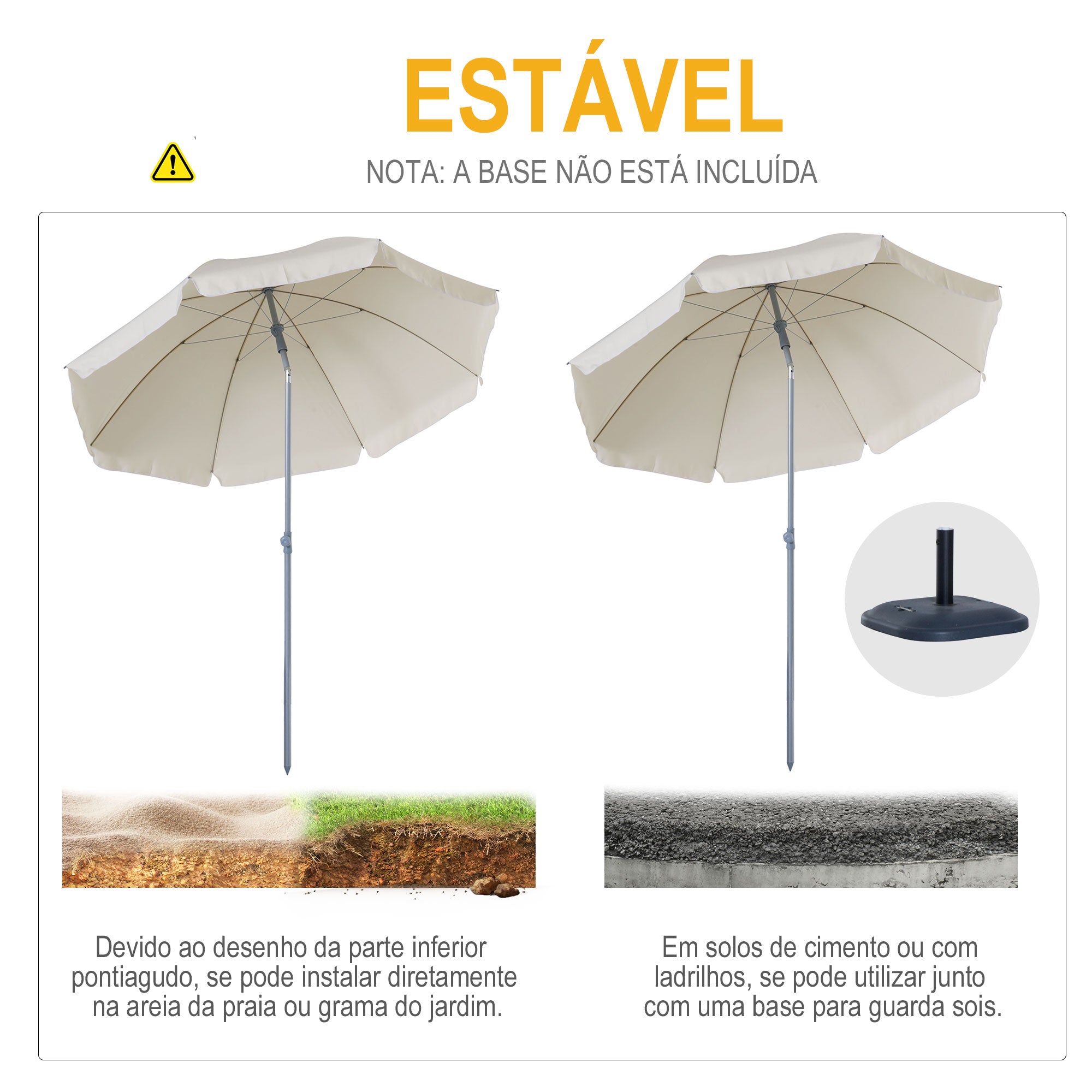 - MEDIDAS TOTAIS: Ø200x230 cm; Comprimento das saias do toldo: 10 cm. BASE NÃO INCLUÍDA Mesmo que você goste de tomar sol, é ruim ficar exposto continuamente. E que melhor maneira de se proteger com este guarda-sol Outsunny. Com tecido de poliéster, é fácil de abrir e fechar. Seu design inclinável permite ajustar rapidamente o ângulo da cobertura para máxima sombra e proteção do sol. Com a parte inferior do poste cravado, você pode facilmente ancorálo na areia.