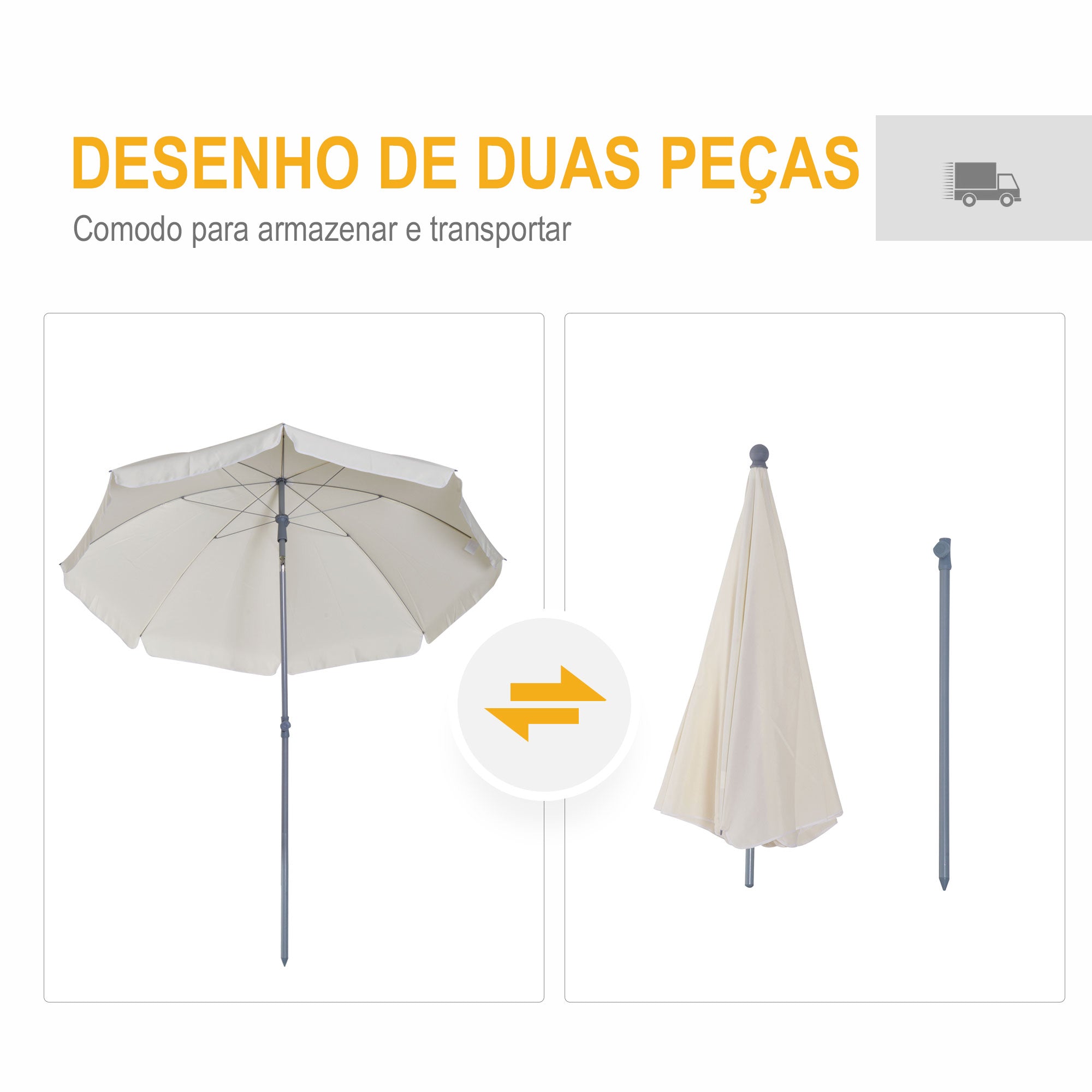 Guarda-sol de praia Ø200 cm de diâmetro com Telhado Inclinado Poste Destacável e pico inferior creme