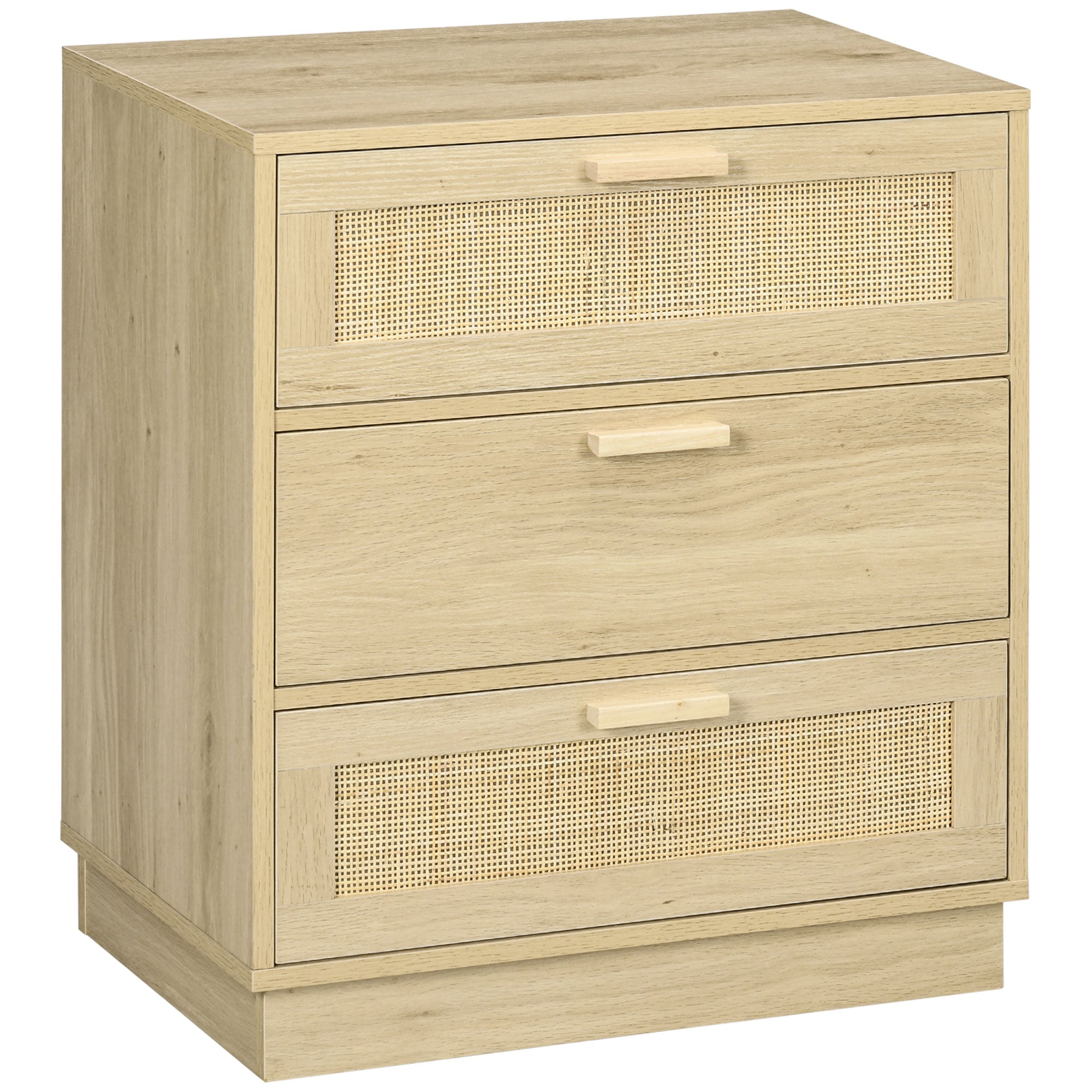 Cómoda com 3 Gavetas de Vime Cómoda de Madeira para Dormitório Sala de Estar Estilo Boêmio 60x38x69 cm Madeira