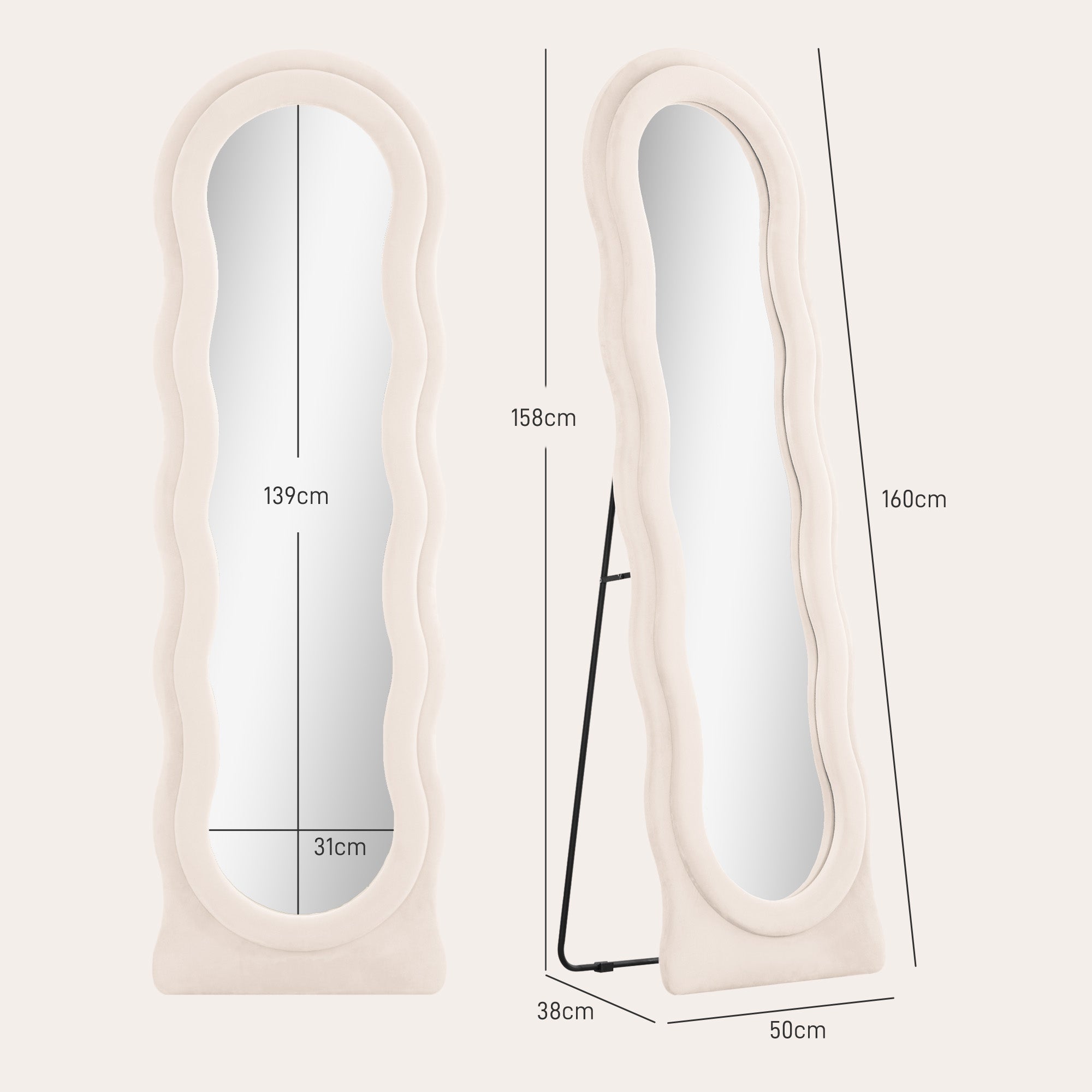 Espelho de Pé 50x160 cm Espelho de Corpo Inteiro ou de Parede com Desenho Assimétrico e Estrutura de Veludo para Sala de Estar Dormitório Creme