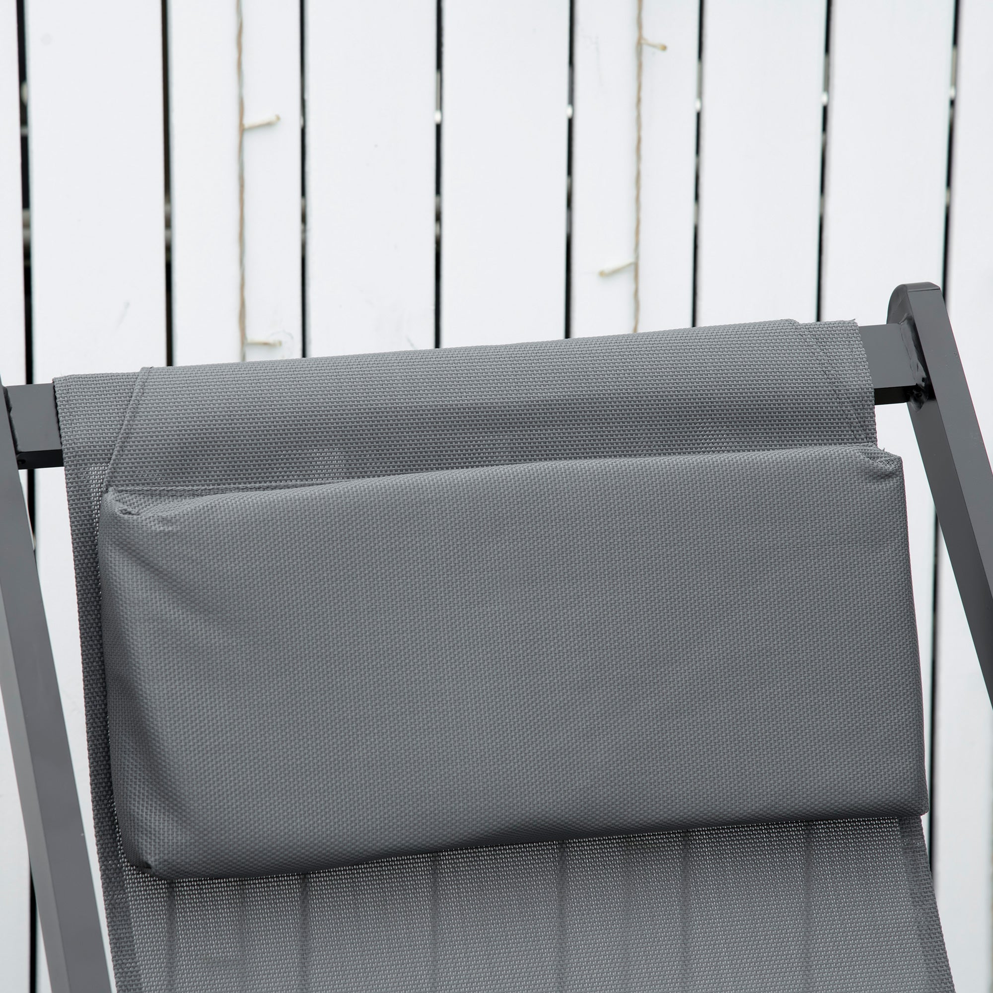 Conjunto de 2 Espreguiçadeiras Dobráveis de Alumínio Espreguiçadeiras de Jardim com Encosto Reclinável em 5 Posições e Apoio para a Cabeça Acolchoado 58x96,5x91,5 cm Cinza