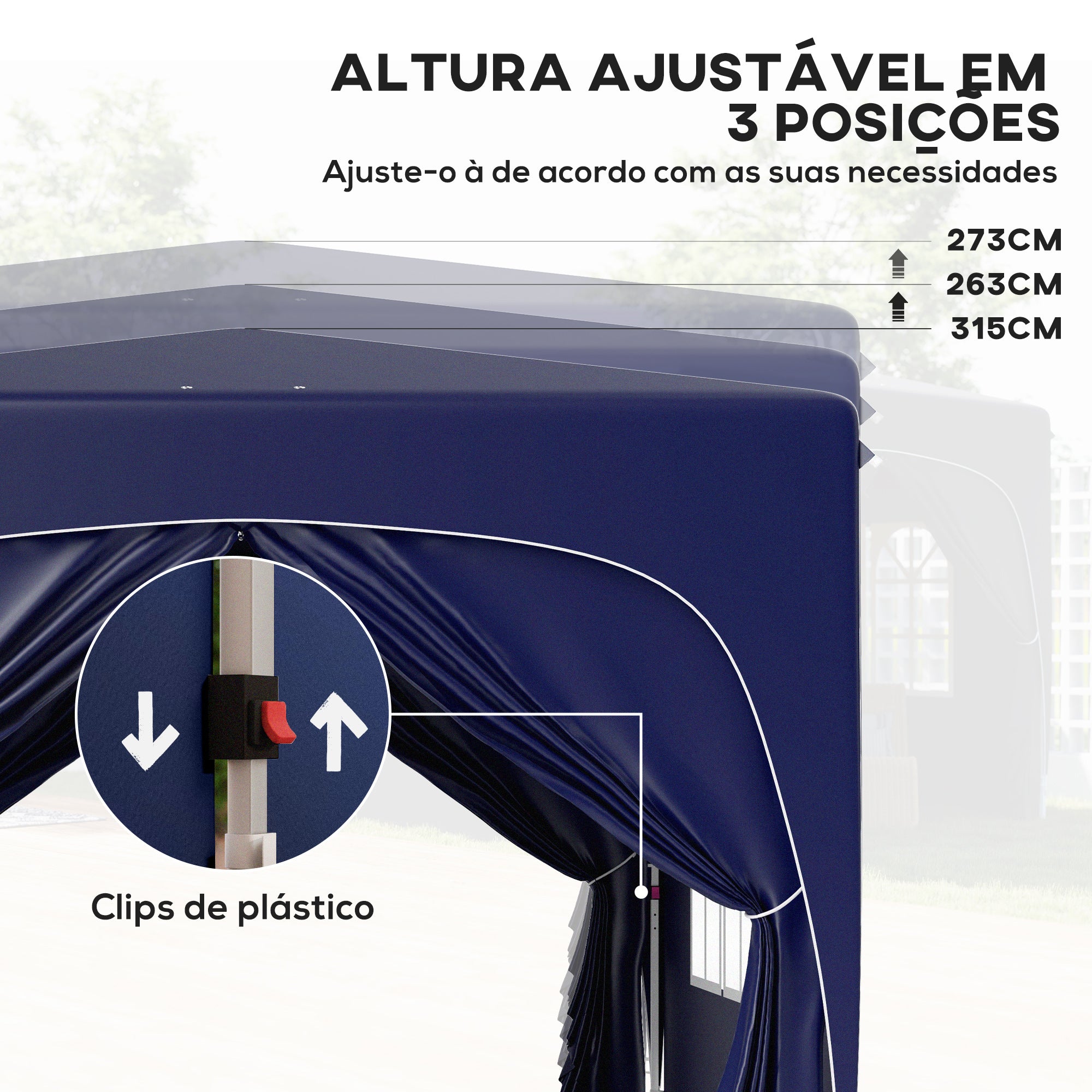 - ALTURA AJUSTÁVEL: Com pés metálicos ajustáveis em três níveis (273/263/253 cm), esta tenda dobrável permite ajustar a altura de forma simples, adaptando·se facilmente a diferentes eventos e preferências pessoais