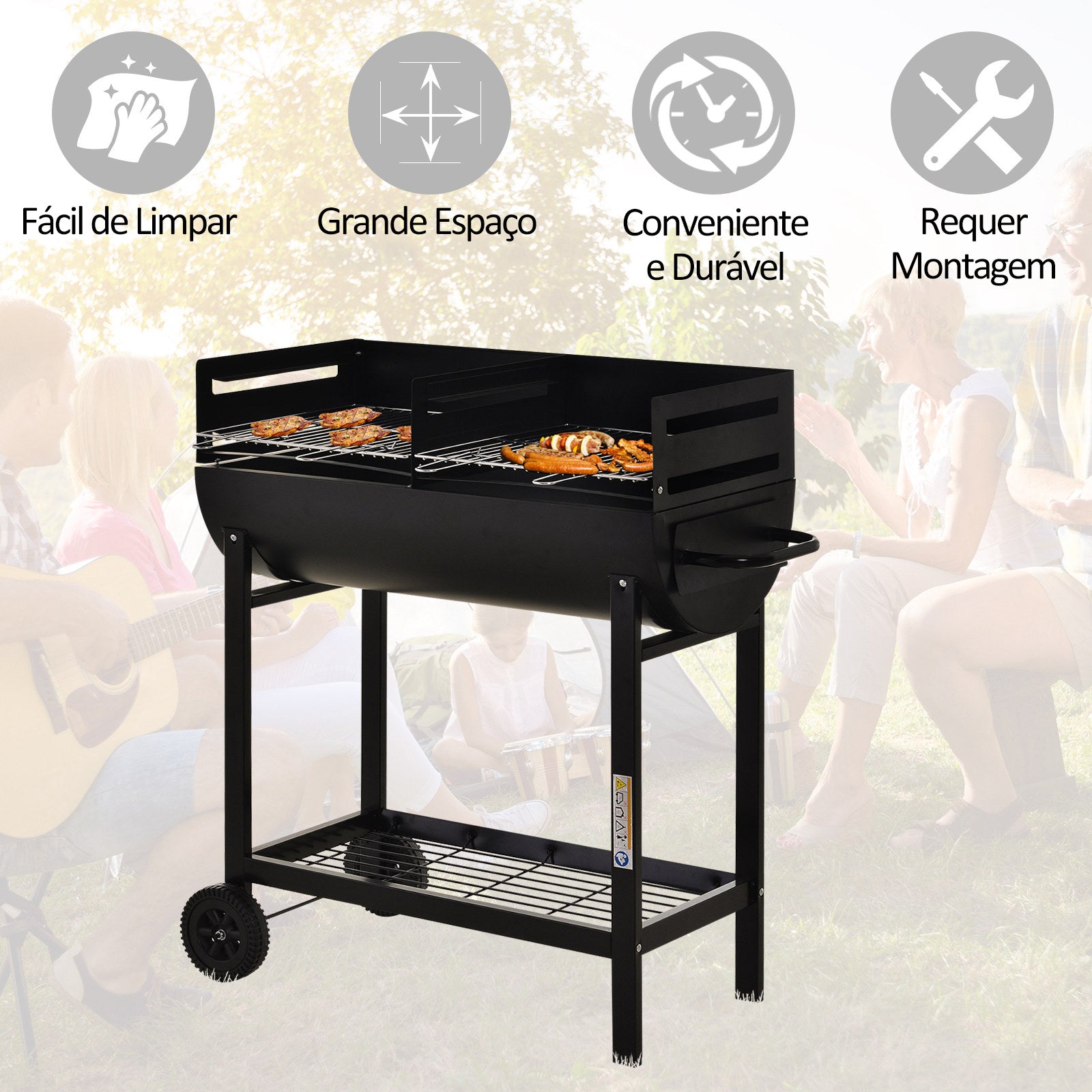 - MEDIDAS: 90cmx45cmx96cm (CxLxA); Você gosta de churrascos com sua família em festas de piquenique ou em qualquer lugar que você quiser Nosso Outsunny de churrasco de carvão é projetado especialmente para conseguir isso. Com um design multifuncional e durável, atende à maioria das suas necessidades de churrasco. Vem com dois tapetes para churrasco, placas de três lados, uma prateleira de armazenamento extra prática, bem como duas rodas móveis. Portanto, você pode ter comida ou pratos na ponta dos dedos e mover o churrasco livremente.