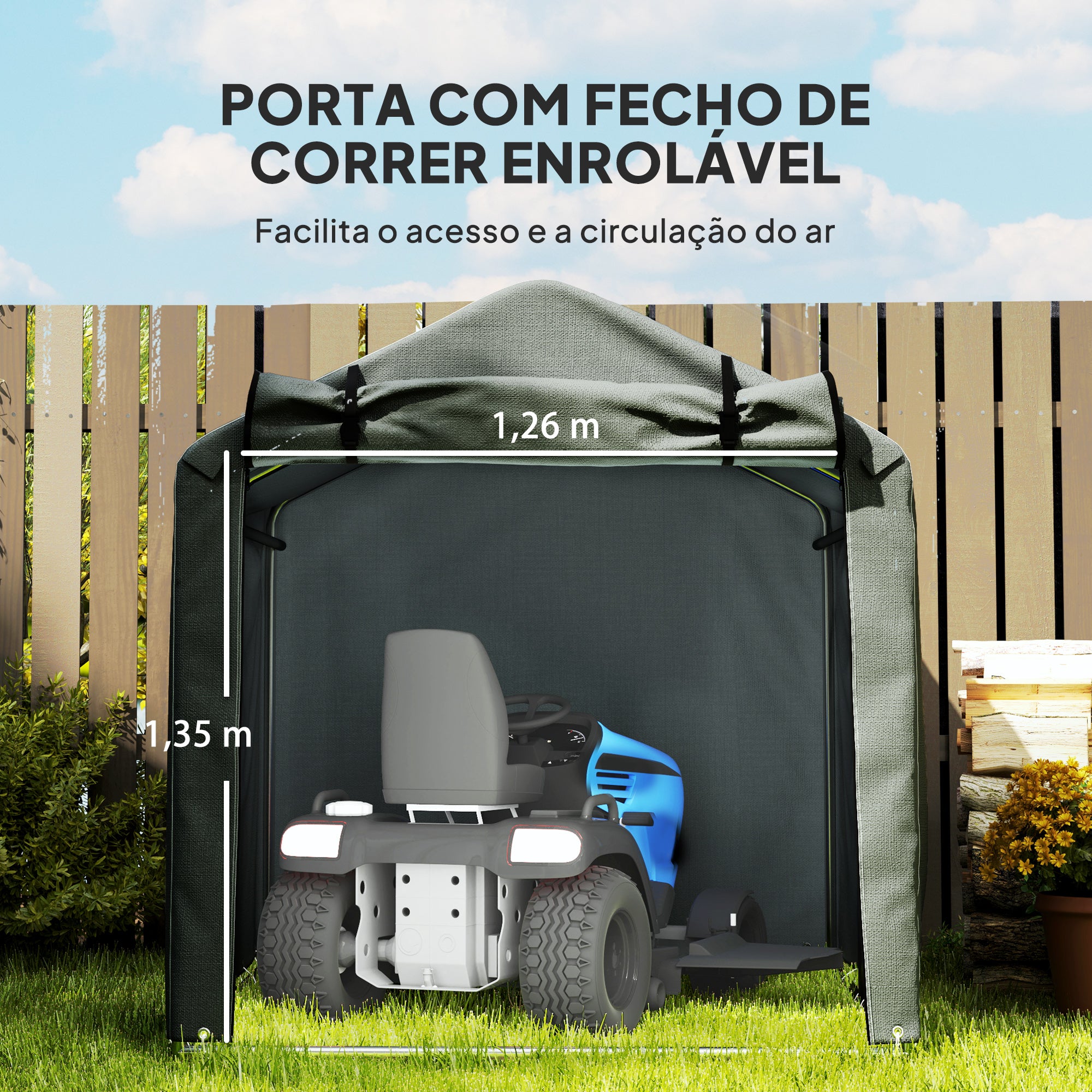- Este abrigo de jardim oferece espaço amplo para bicicletas, motos, equipamentos de piscina e mais A sua lona de PE protege eficazmente contra a água e a radiação UV A estrutura de metal galvanizado oferece maior resistência à ferrugem e à corrosão Esta tenda de jardim exterior inclui estacas e cordas tensores que reforçam a estabilidade da estrutura A porta com fecho de correr desmontável permite um acesso cómodo e boa ventilação Requer montagem simples Deve ser sempre instalada sobre um solo nivelado e estável Em caso de vento forte, chuva intensa ou neve, recomenda·se adicionar proteção extra ou desmontar temporariamente o abrigo para evitar danos