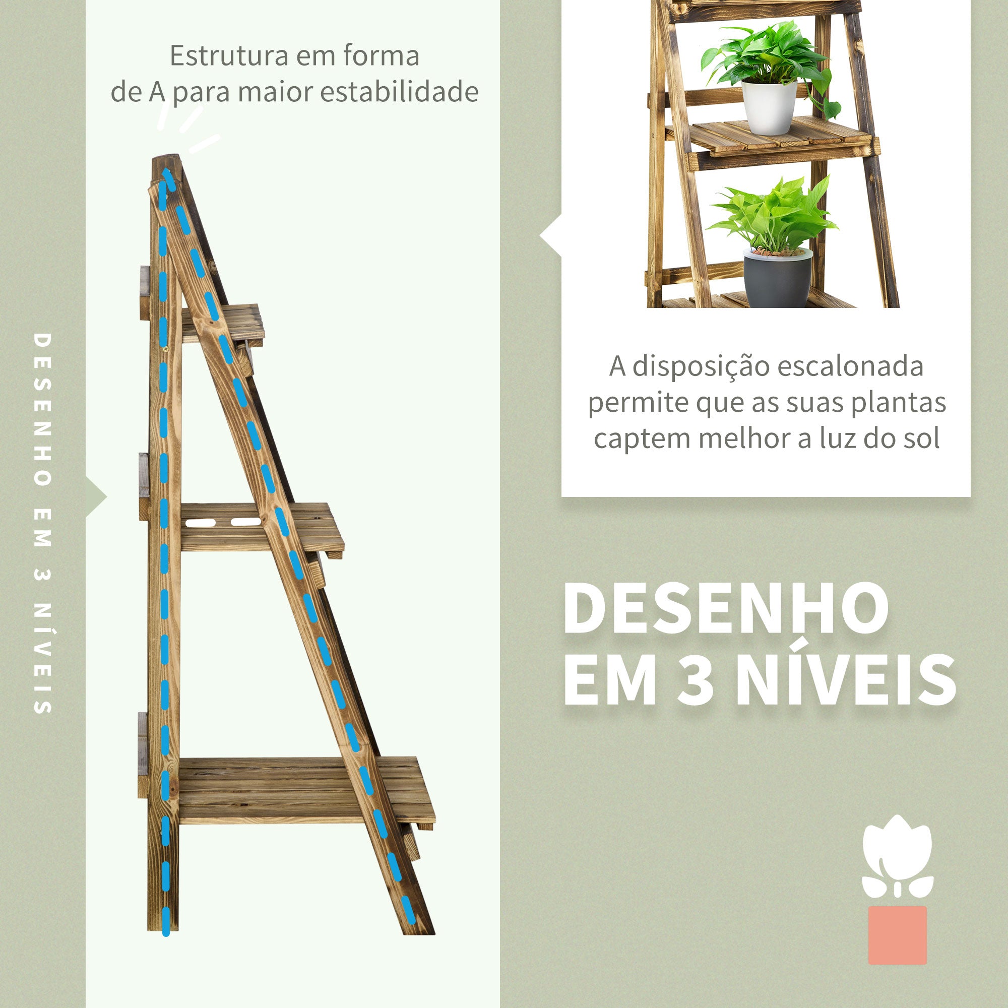 - MEDIDAS TOTAIS: 40x37x93 cm (CxLxA). Medidas dobrado: 40 x 6,5 x 99 cm. Peso máximo suportado: 40 kg (total). Requer montagem Gosta de flores e plantas, mas não tem um espaço adequado? Este suporte para plantas de vários níveis da Outsunny fabricado de madeira de abeto com acabamento carbonizado é a escolha perfeita para decorar seu jardim e sua casa. Graças ao seu desenho em forma de escada, oferece diferentes níveis para colocar muitos vasos de plantas de tamanhos diferentes. Ideal tanto no interior para adicionar um toque de vegetação à sua casa como no exterior para deixar as suas plantas respirarem livremente