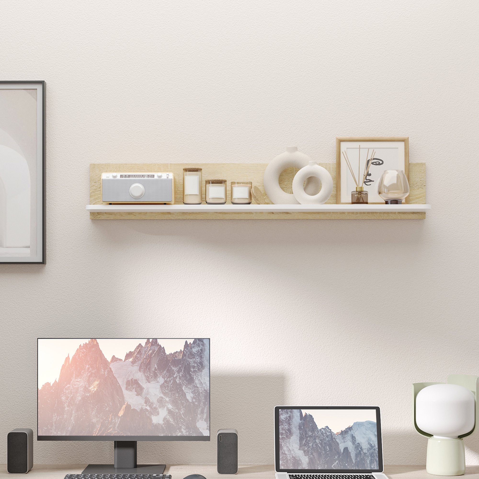- MEDIDAS TOTAIS: 120x15x20 cm (CxLxA). Capacidade máxima de peso: 10kg. Requer montagem Para quadros, plantas, para suas memórias favoritas … esta estante de parede da HOMCOM é ideal para exibir e expor suas decorações favoritas. Basta fixar em um lugar onde você quiser, seja o quarto, corredor, sala ou cozinha. Fabricada em melamina de madeira resistente e estável esta estante flutuante é ideal para uma utilização prolongada. Além disso, o seu bonito desenho e combinação das cores madeira e branco, combinará em qualquer espaço e decoração em sua casa