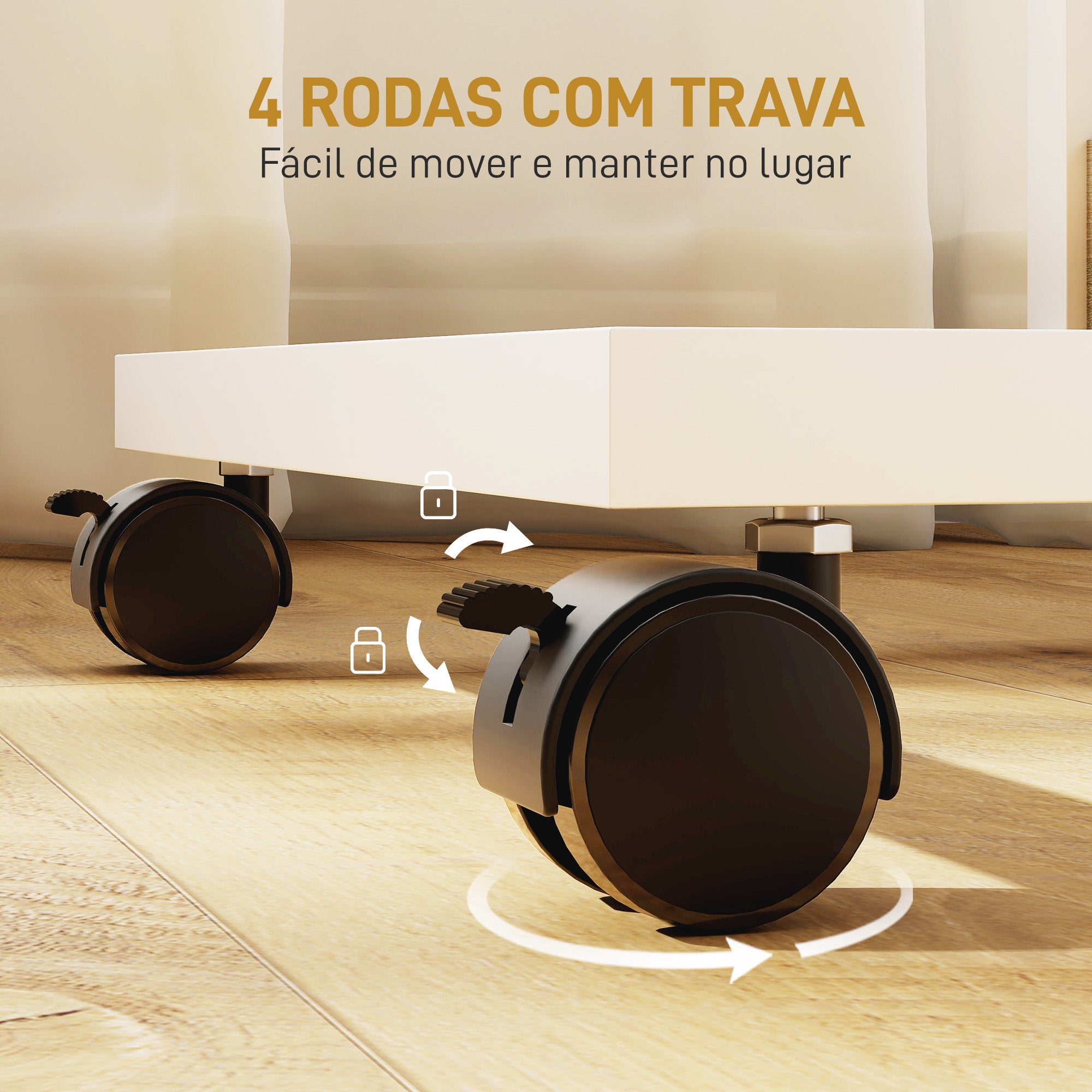 - RESISTENTE E COM RODAS: Com uma estrutura robusta em aço, a mesa auxiliar é durável e estável. O tampo e as prateleiras são fabricados em MDF de alta qualidade. As quatro rodas giratórias permitem mover facilmente, e duas delas têm travão.