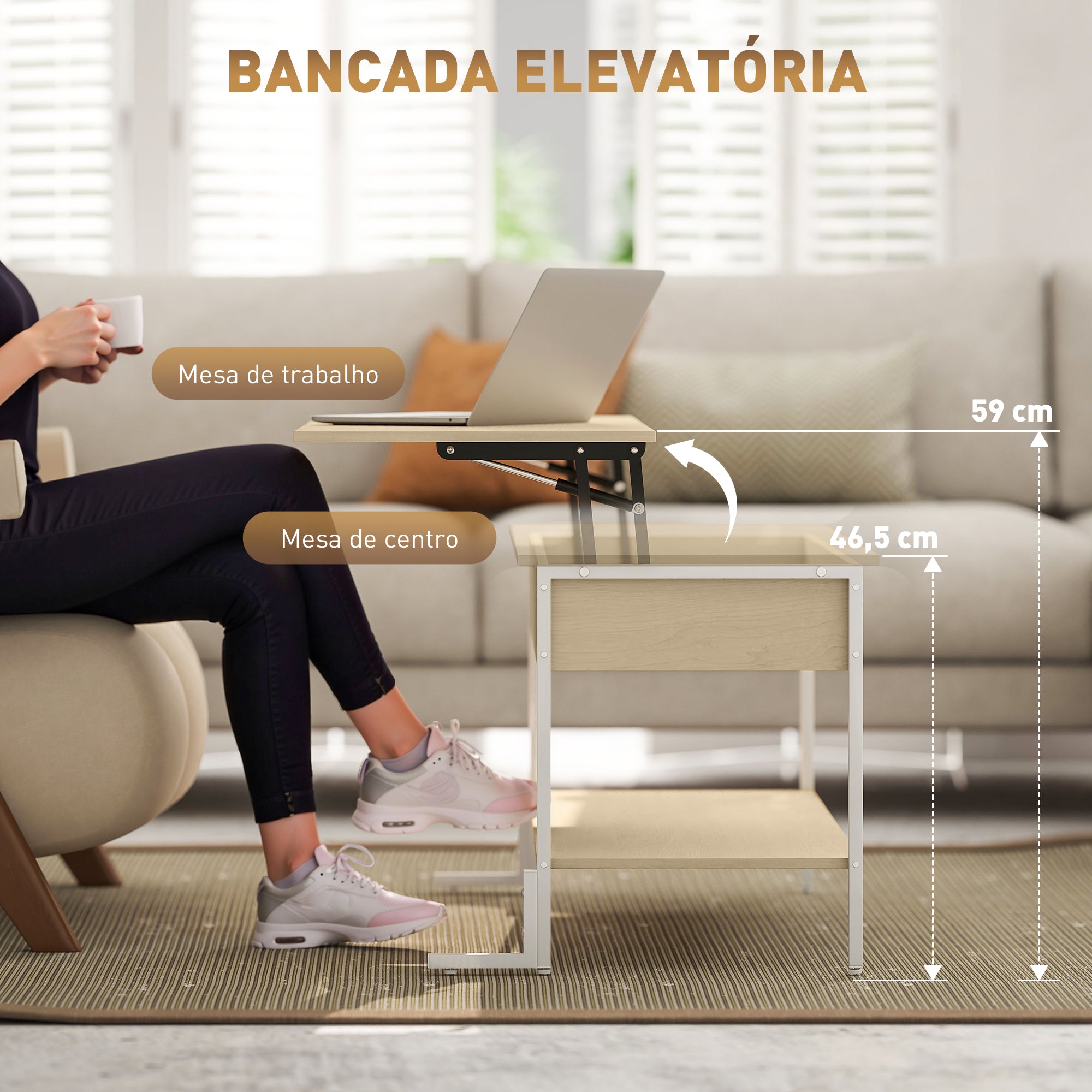 • MEDIDAS TOTAIS: 95x40x46,5 cm (CxLxA) e elevada: 95x40x59 cm (CxLxA). Capacidade máxima de carga: 15 kg. Requer montagem O pacote inclui: ? 1 x Mesa de centro elevável; ? 1 x Manual de instruções; Esta mesa de centro elevável da HOMCOM é a solução ideal para otimizar espaços pequenos, alternando entre mesa de centro e superfície de trabalho. O compartimento oculto mantém o ambiente organizado, enquanto a prateleira aberta oferece espaço extra. Os painéis com efeito madeira e estrutura metálica branca trazem um estilo industrial moderno