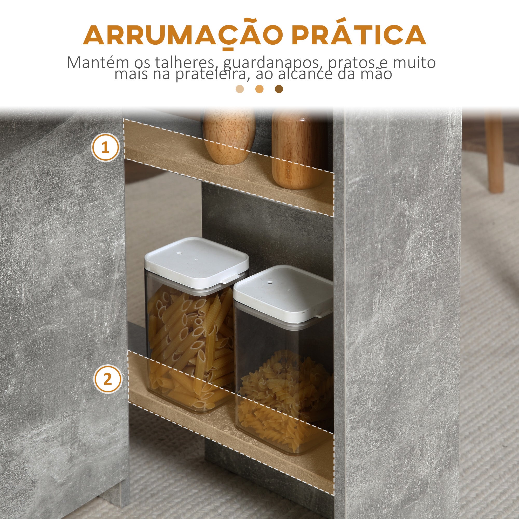 Mesa de Sala de Jantar Dobrável Mesa de Madeira com 2 Prateleiras de Armazenamento e Rodas para Cozinha 75x140x74 cm Cinza