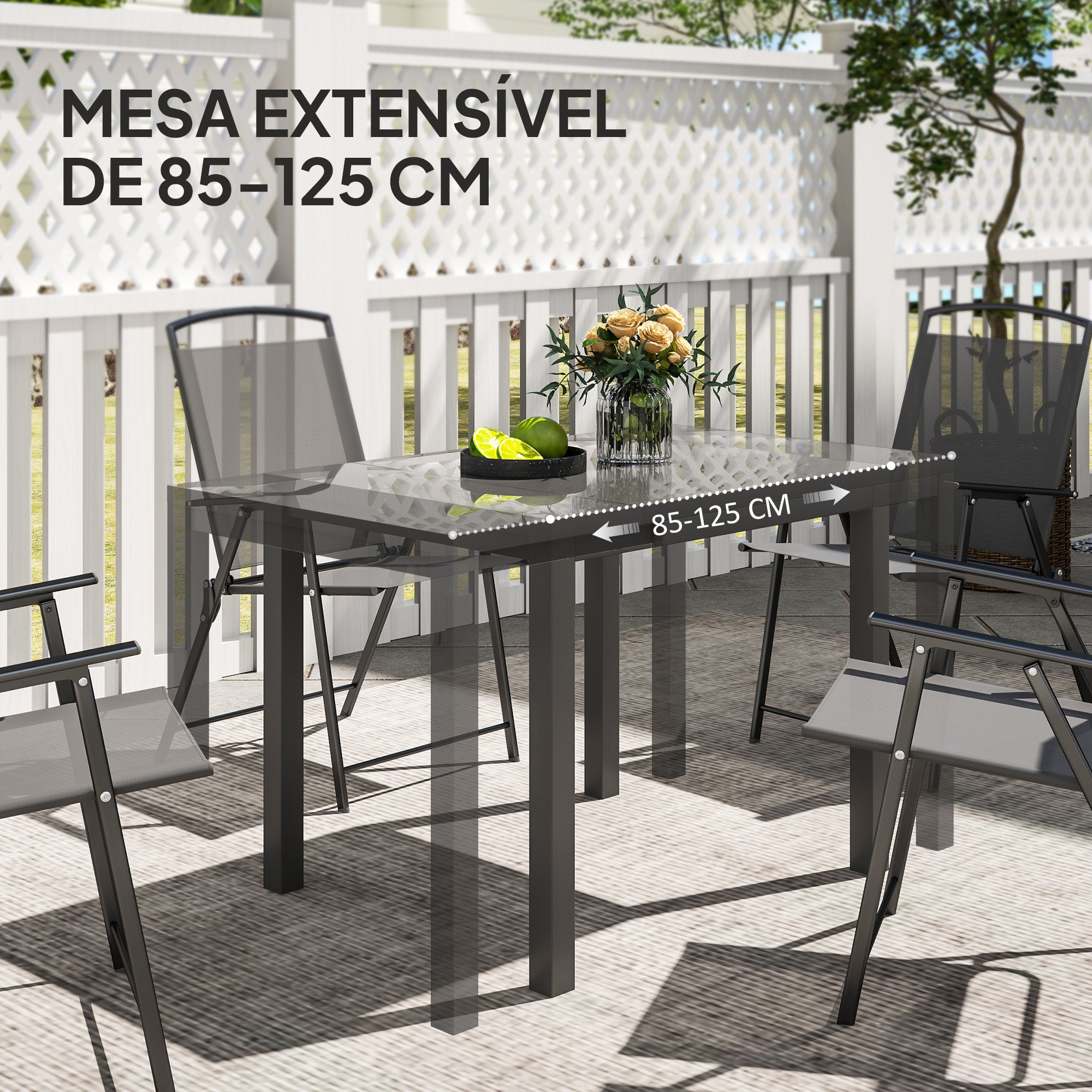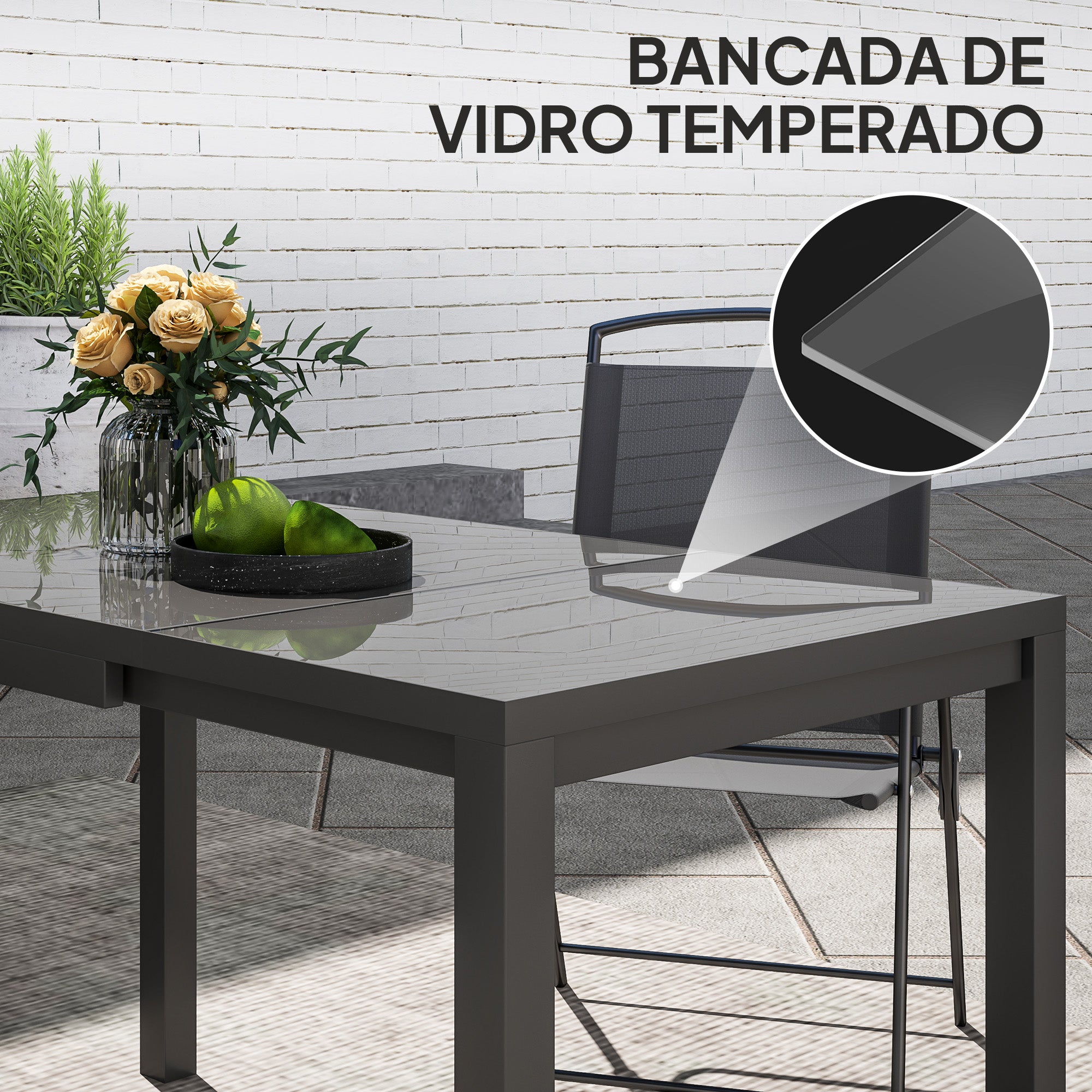 - Mesa extensível com capacidade para 4 a 6 pessoas Estrutura de alumínio revestido a pó, robusta e resistente à oxidação A bancada de vidro temperado é adequada para utilização no exterior e é fácil de limpar Colocação versátil em jardim, varanda, terraço ou pátio Requer montagem
