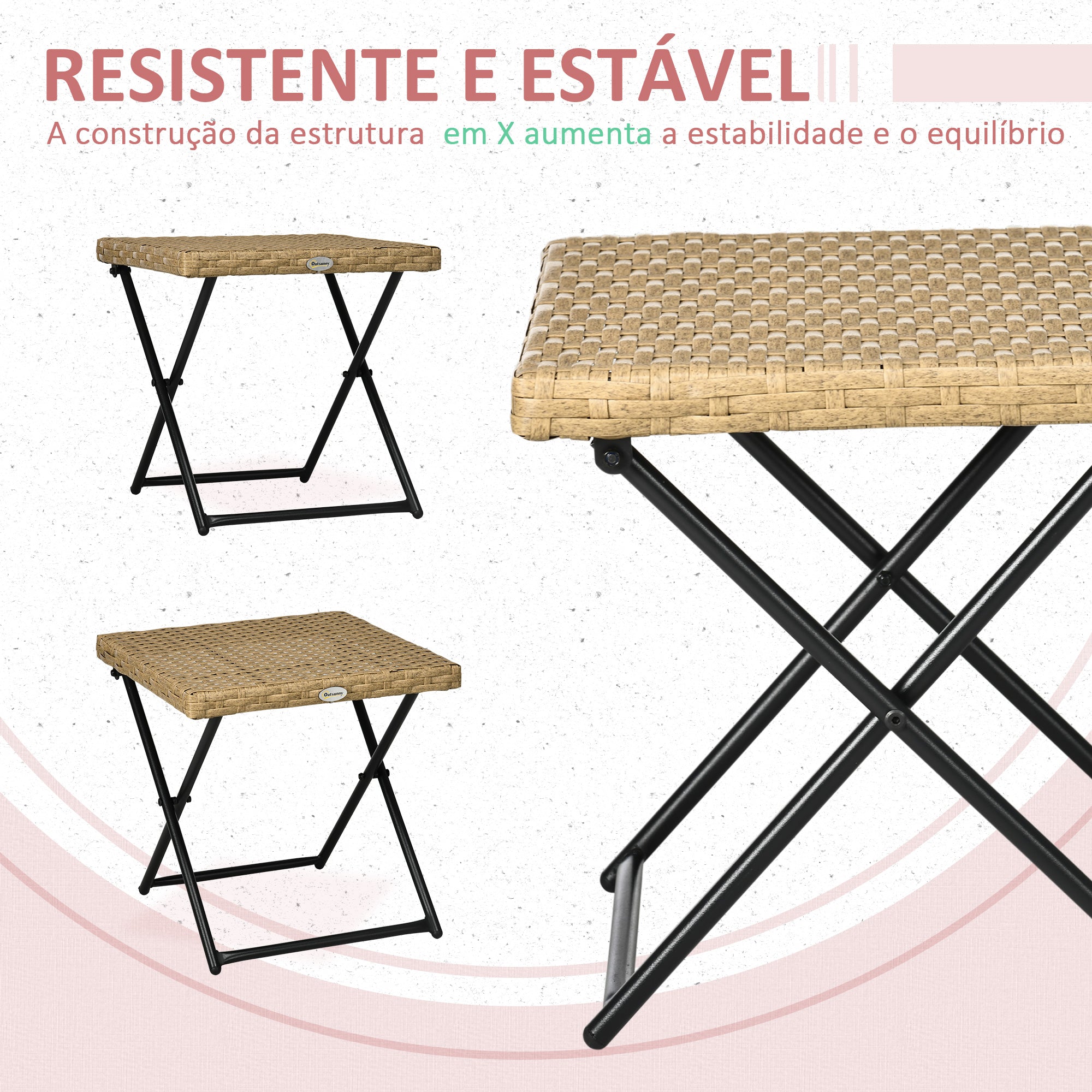 Mesa de Jardim em Vime Sintético Mesa de Terraço Exterior Dobrável com Pés Cruzados e Estrutura de Aço para Pátio Varanda 40x40x40 cm Natural