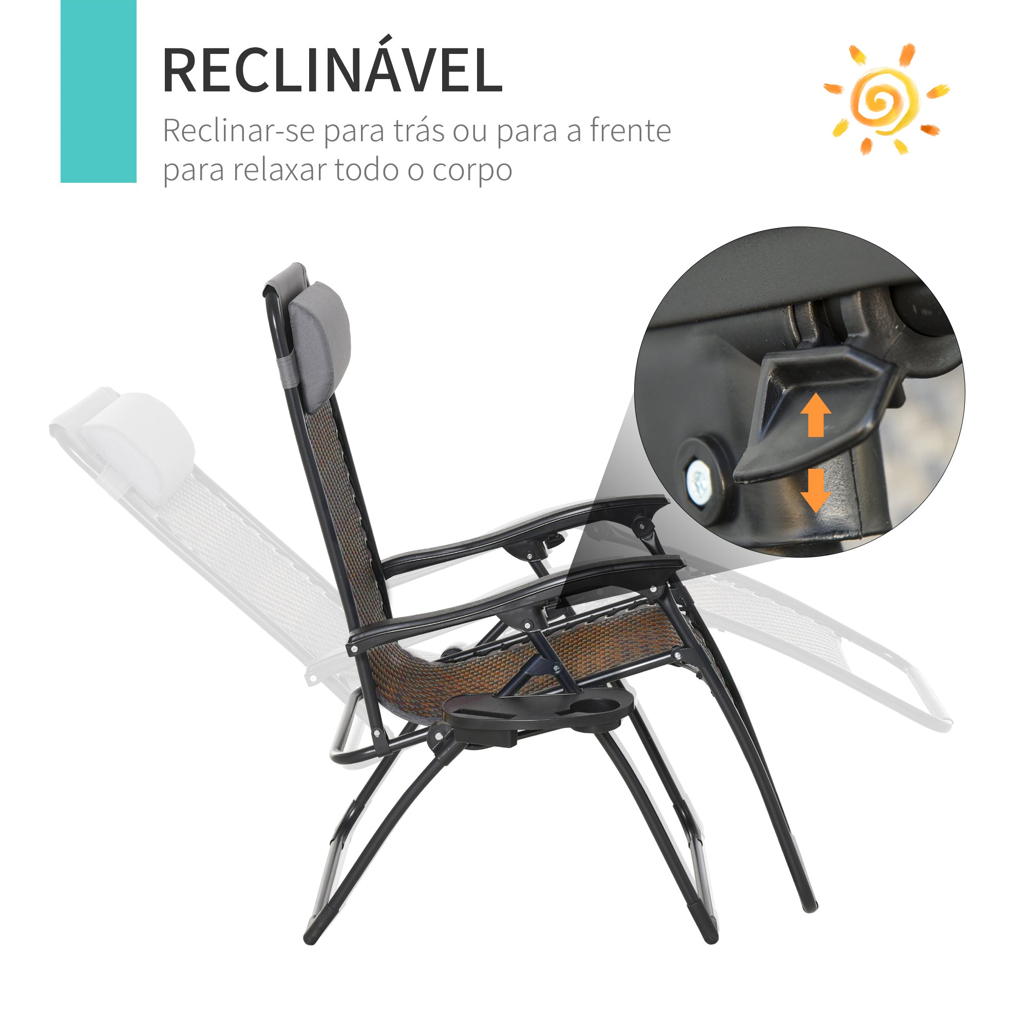 - Espreguiçadeira reclinável e dobrável ideal para uso ao ar livre