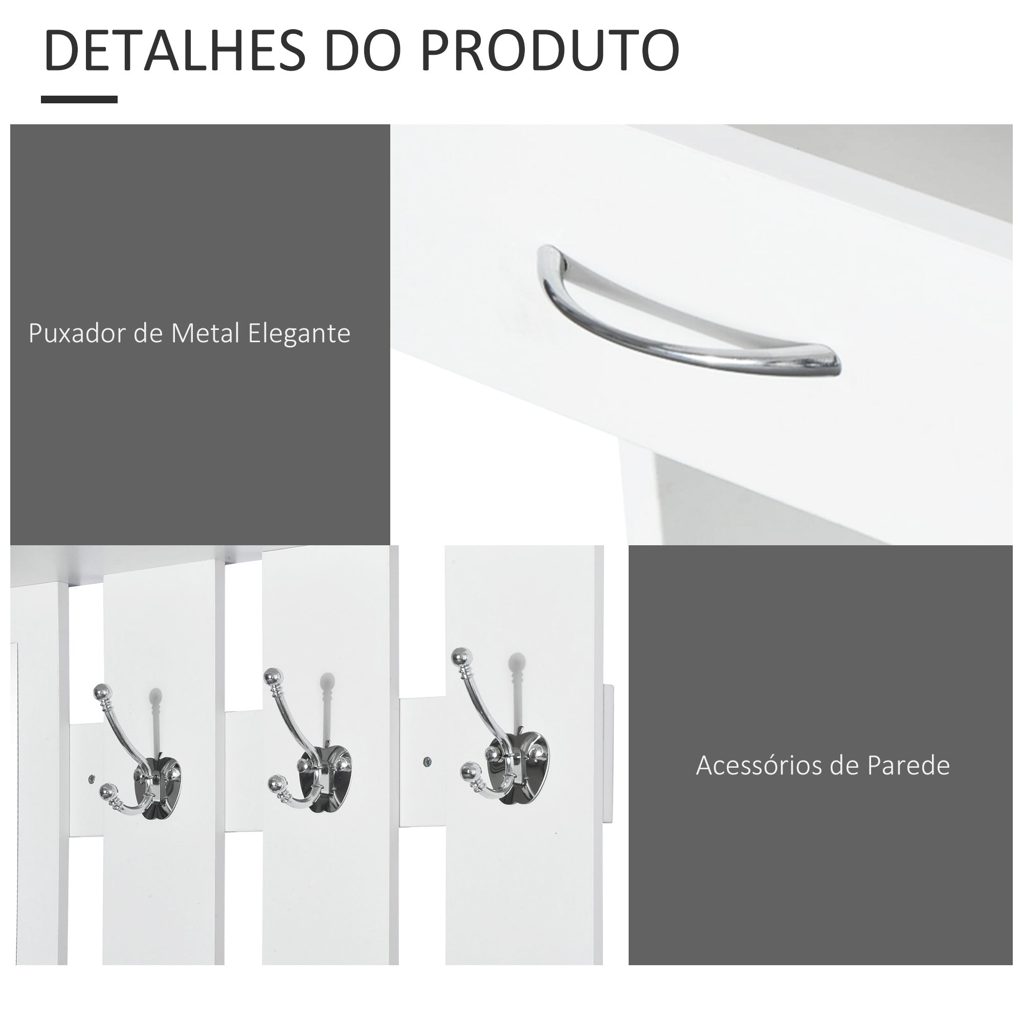Conjunto de Móveis de Entrada Bengaleiro com Espelho e Sapateira com Gaveta 90x24x75 cm Branco