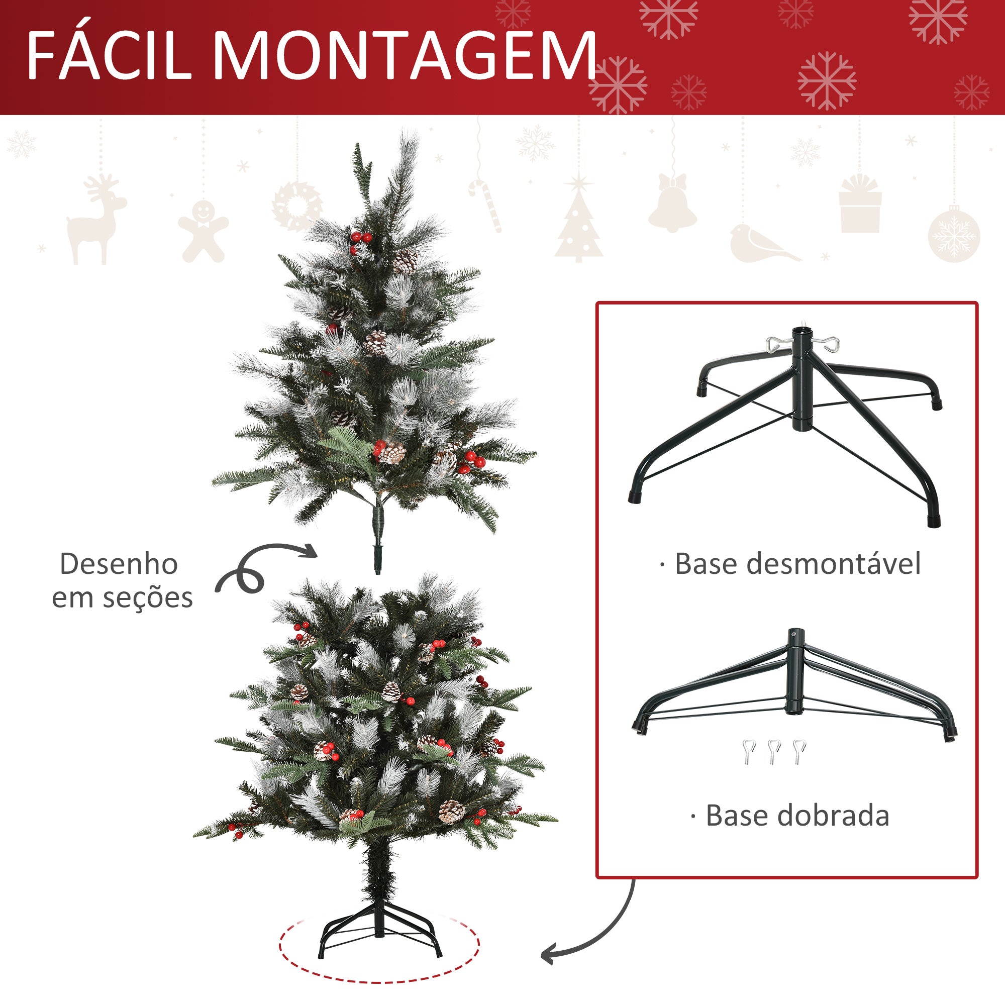 Árvore de Natal Artificial 150cm com 440 Ramas 39 Pinhas e 39 Frutinhas Folhas de PVC PE Base Dobrável e Suporte Metálico Decoração de Natal para Interiores Verde