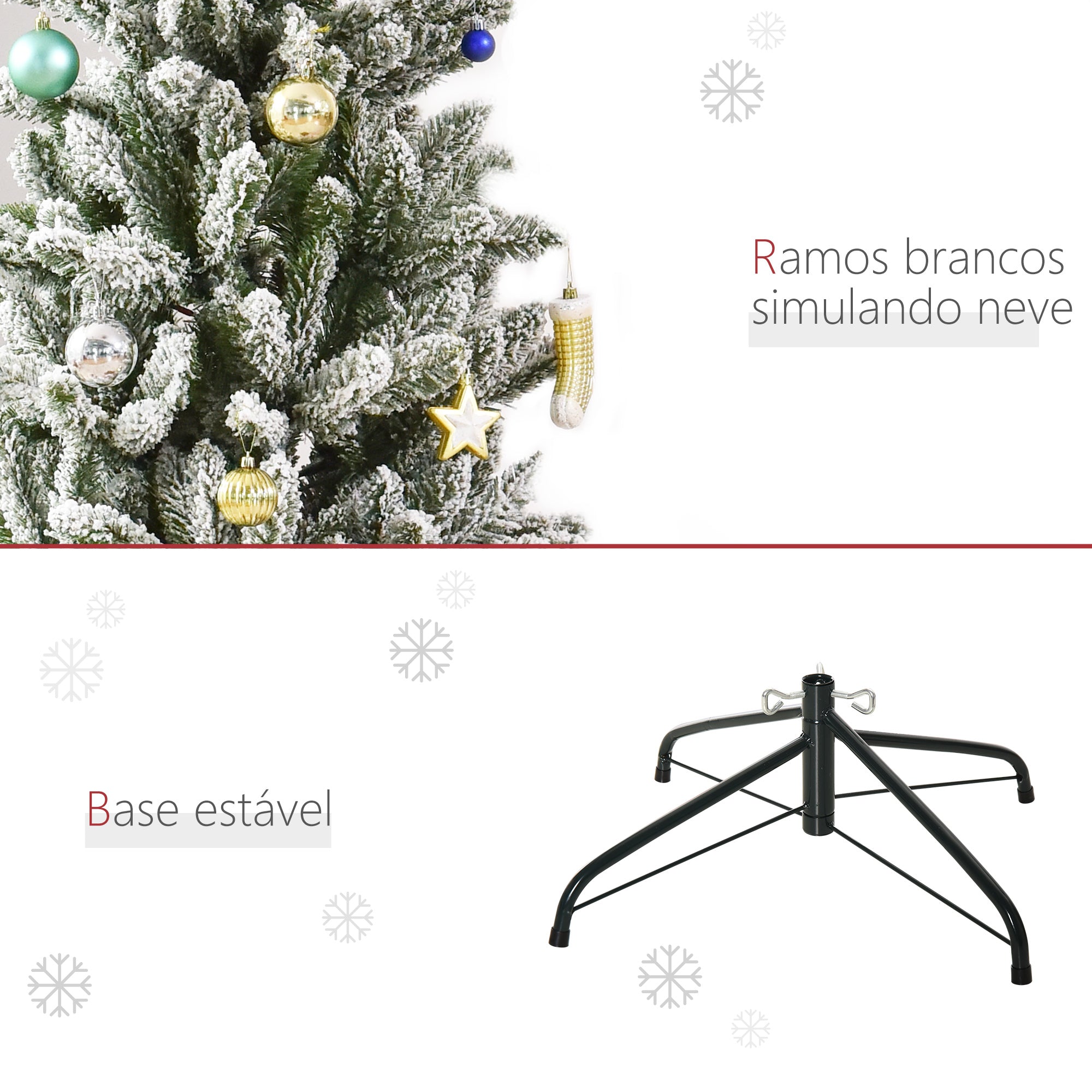 Árvore de Natal 180cm Neve Artificial com 394 Ramos Ignífugos de PVC Base Dobrável e Suporte de Aço Decoração de Natal para Interiores Ø60x180cm Verde e Branco