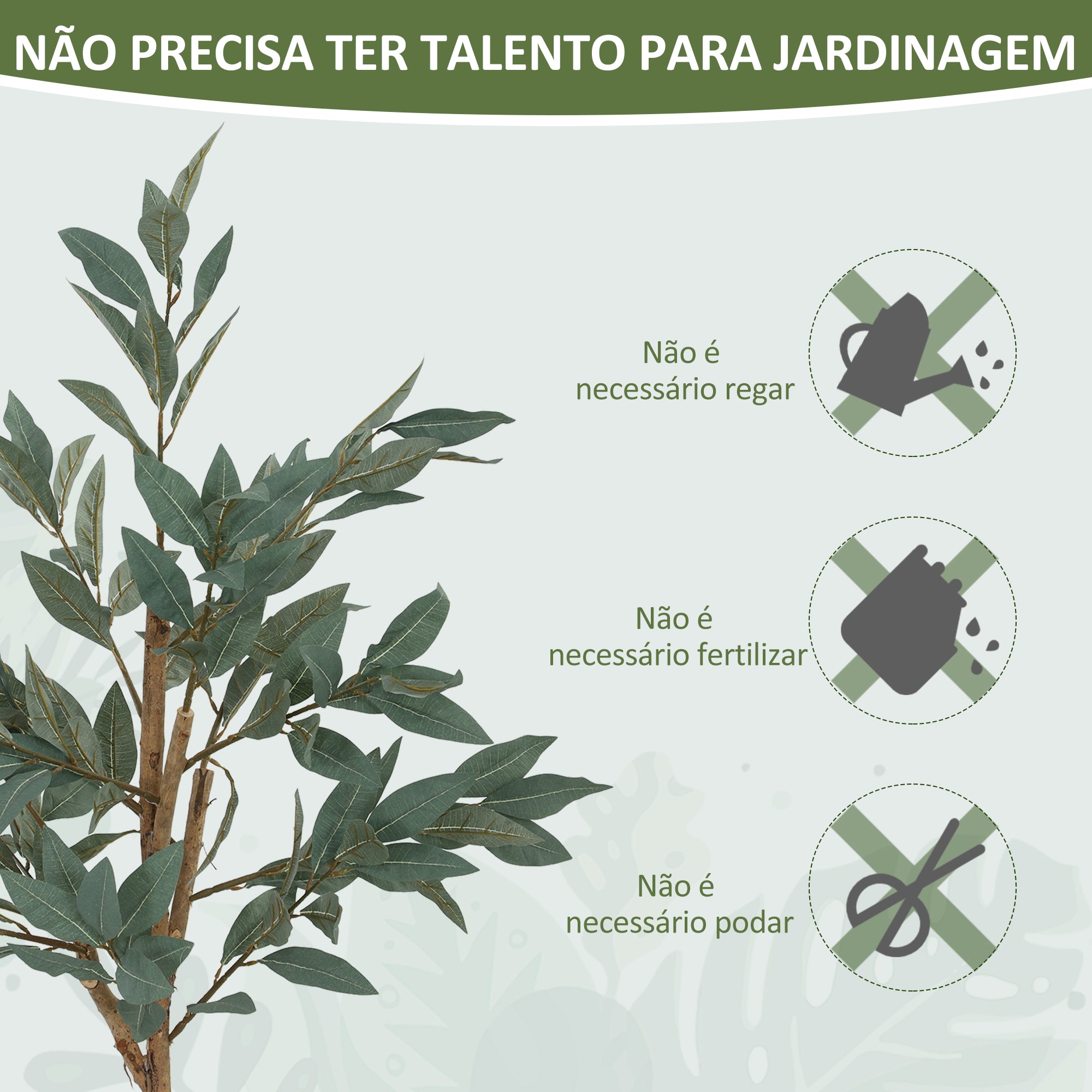 • Aspeto realista com folhas luxuriantes, troncos que parecem reais, imitação de musgo e erva, que simula o aspeto das plantas naturais Esta árvore artificial com folhas de seda que asseguram uma textura delicada e realista Esta planta de louro artificial alta com materiais resistentes ao desbotamento mantém a cor vibrante por mais tempo Ramificações flexíveis com arame metálico para facilitar o modelamento Vaso preenchido com cimento que proporciona uma estabilidade robusta Não requer rega, poda nem luz solar para a sua manutenção
