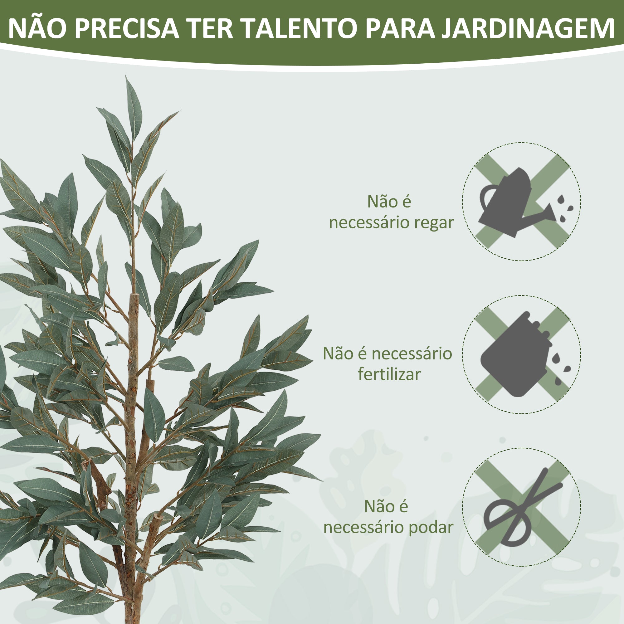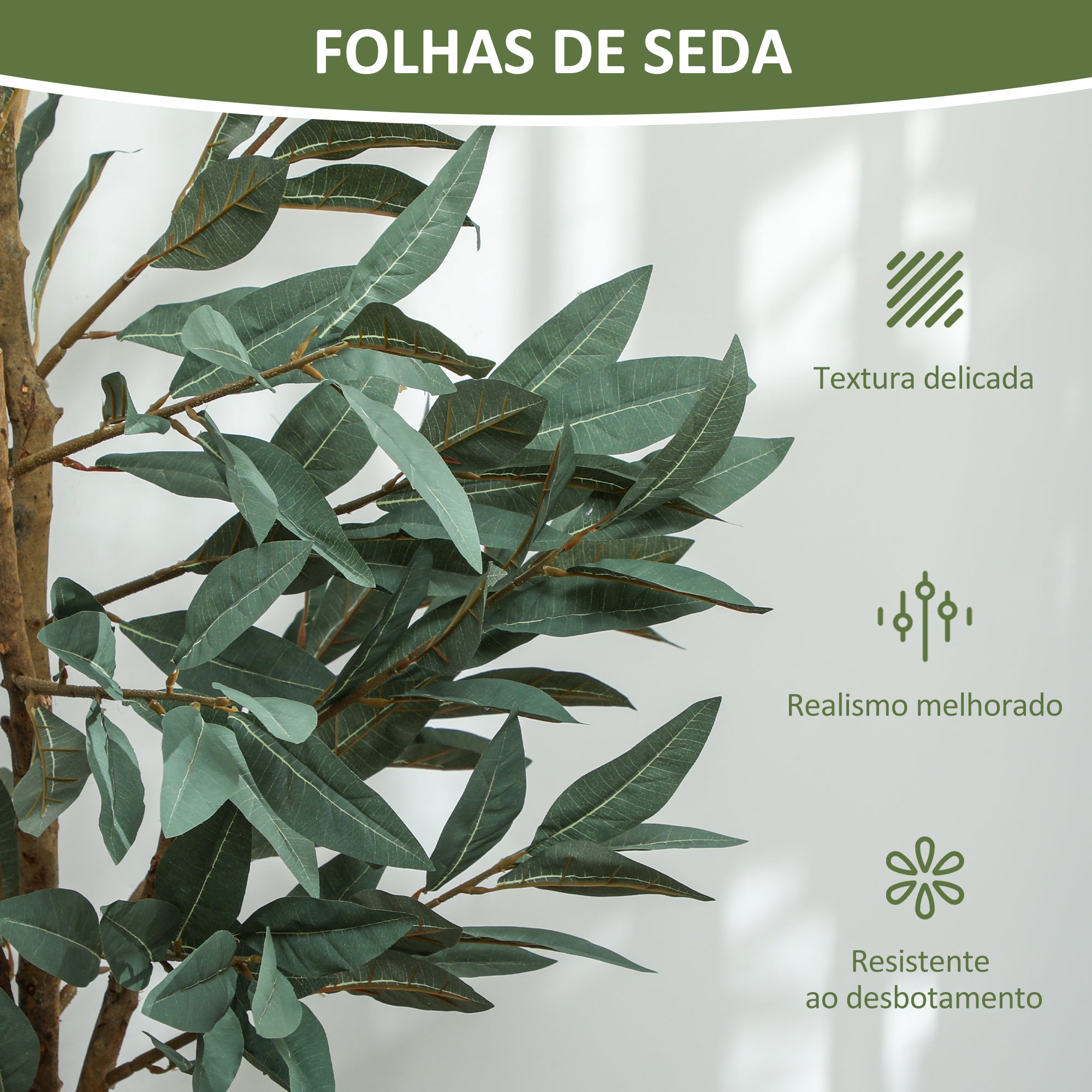 - Aspeto realista com folhas luxuriantes, troncos que parecem reais, imitação de musgo e erva, que simula o aspeto das plantas naturais Esta árvore artificial com folhas de seda que asseguram uma textura delicada e realista Esta planta de louro artificial alta com materiais resistentes ao desbotamento mantém a cor vibrante por mais tempo Ramificações flexíveis com arame metálico para facilitar o modelamento Vaso preenchido com cimento que proporciona uma estabilidade robusta Não requer rega, poda nem luz solar para a sua manutenção