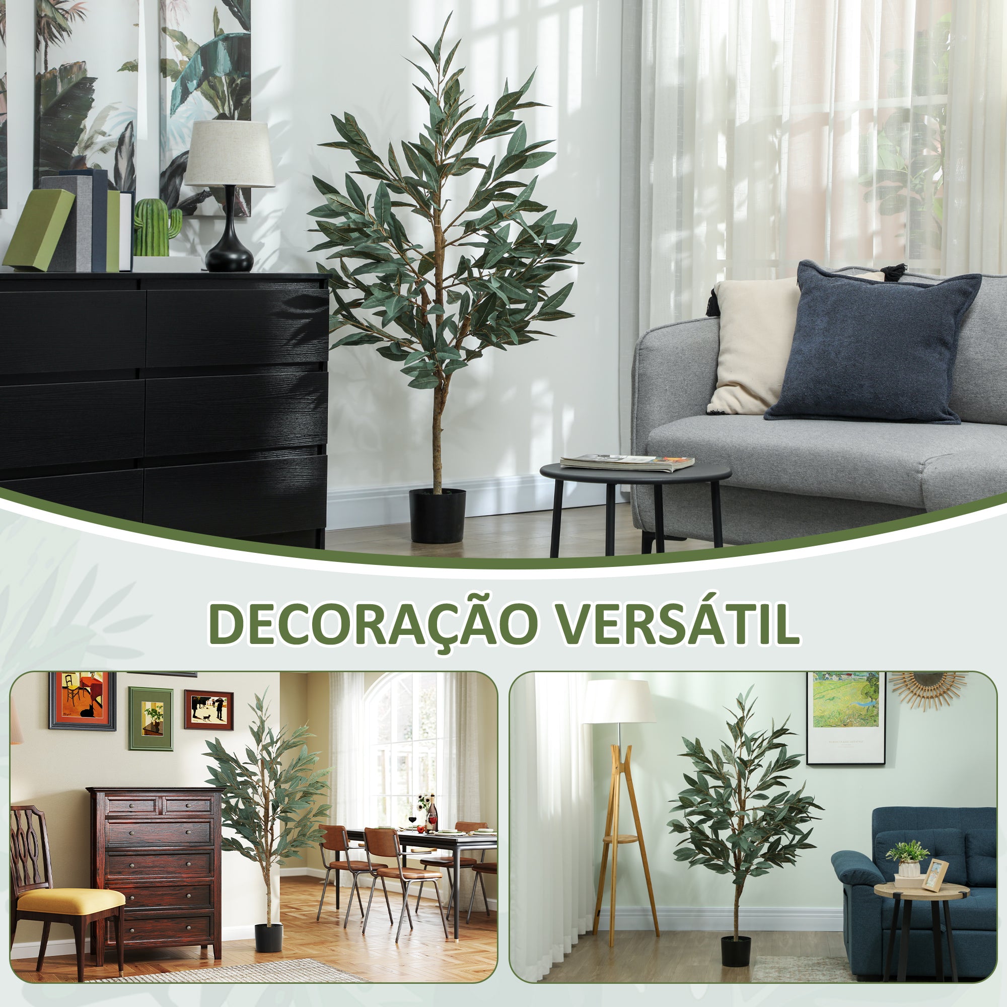 Planta Artificial de Louro 150 cm Planta Artificial Decorativa Grande Decoração para Casa Escritório Varanda Quarto Verde