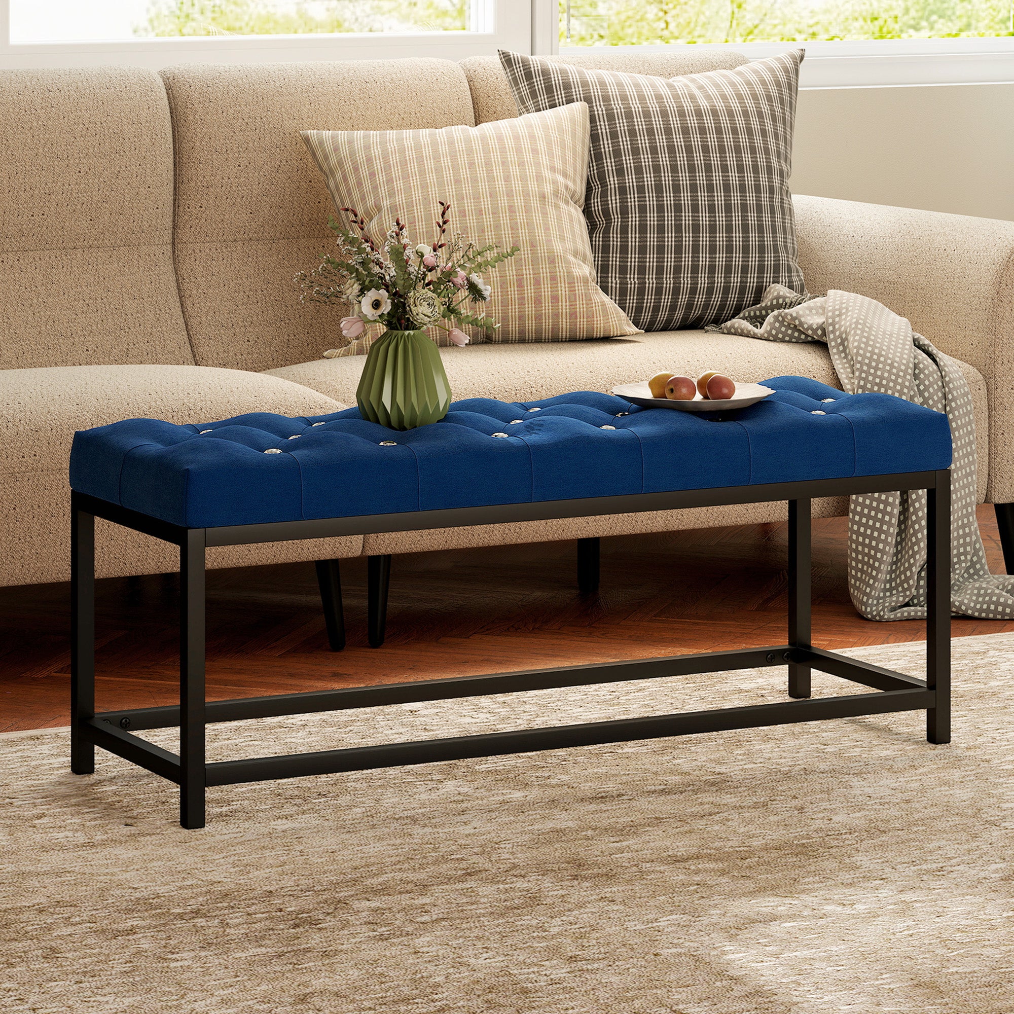 Banco ao Pé da Cama Estofado em Veludo Banqueta para Quarto Design Capitoné Base de Metal Banco para Quarto Entrada Sala 117x40x48 cm Azul Escuro