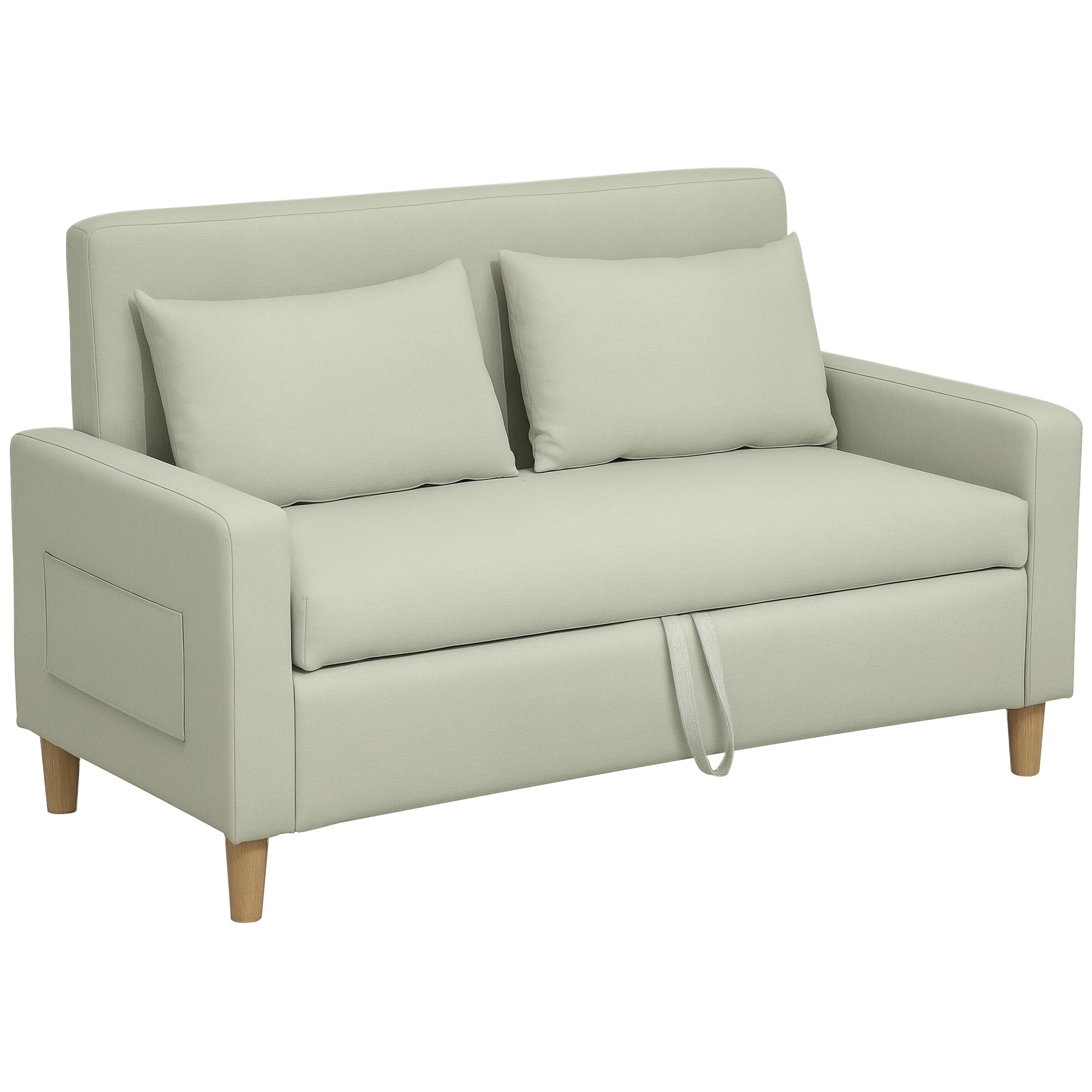 Sofá 2 Lugares Estofado em Linho Sintético Sofá Sala de Estar com 2 Almofadas Espaço de Armazenamento e Pés de Madeira Sofá Pequeno Carga 240 kg 135x72x84 cm Bege