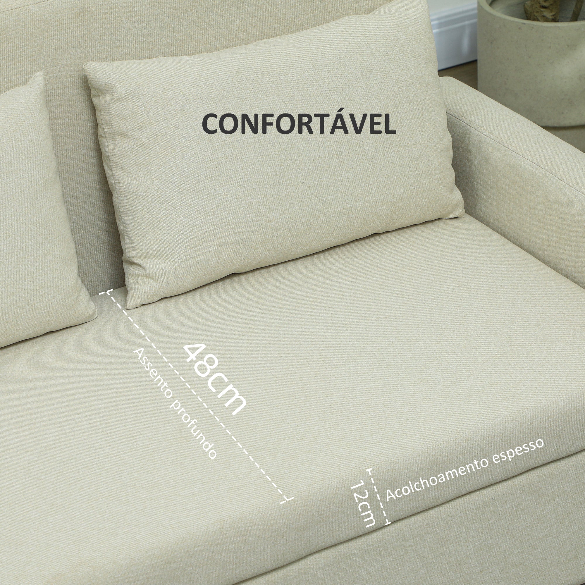 • CONFORTO: Este sofá de dois lugares, estofado em tecido de linho respirável, oferece um grande conforto graças à espuma de alta densidade, às almofadas das costas e a uma estrutura de molas em S reforçada, garantindo durabilidade e um assento confortável