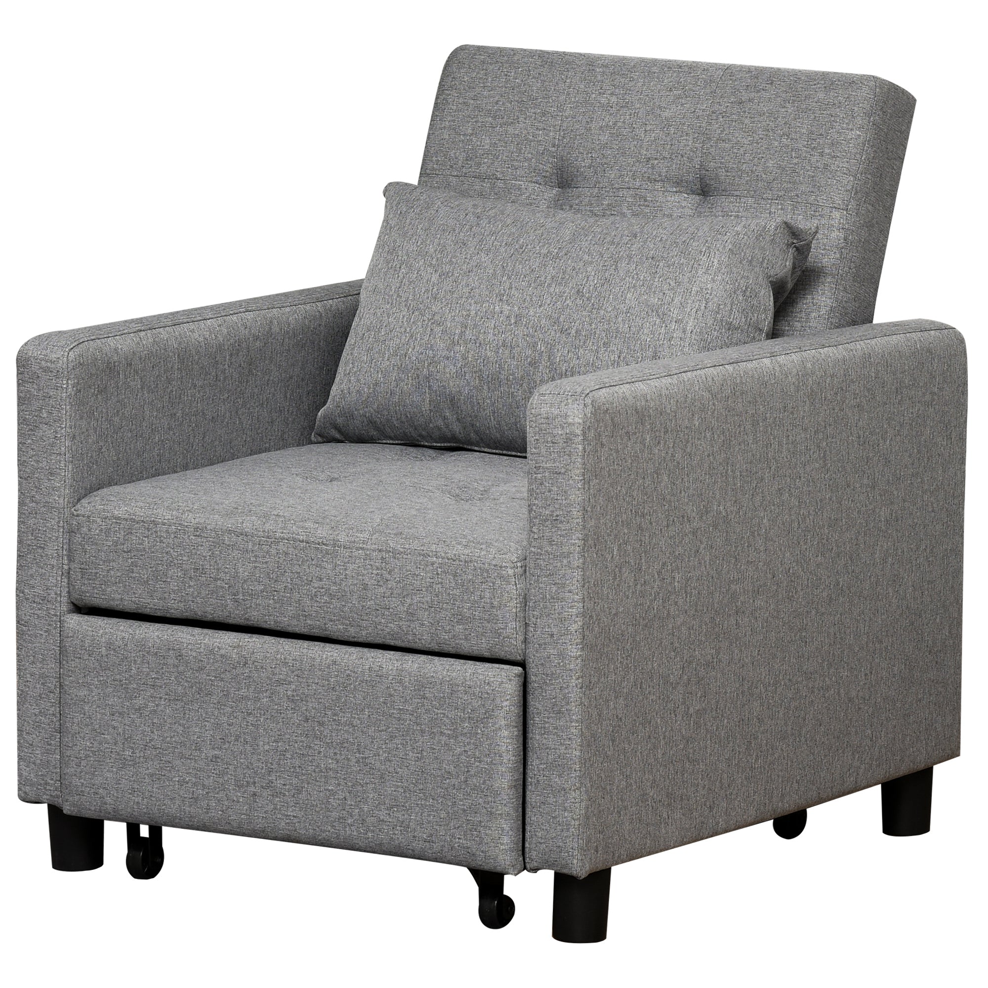 Sofá-cama Individual Poltrona com encosto reclinável Almofada removível Assento acolchoado e 4 rodas 69x77x84 cm Cinza