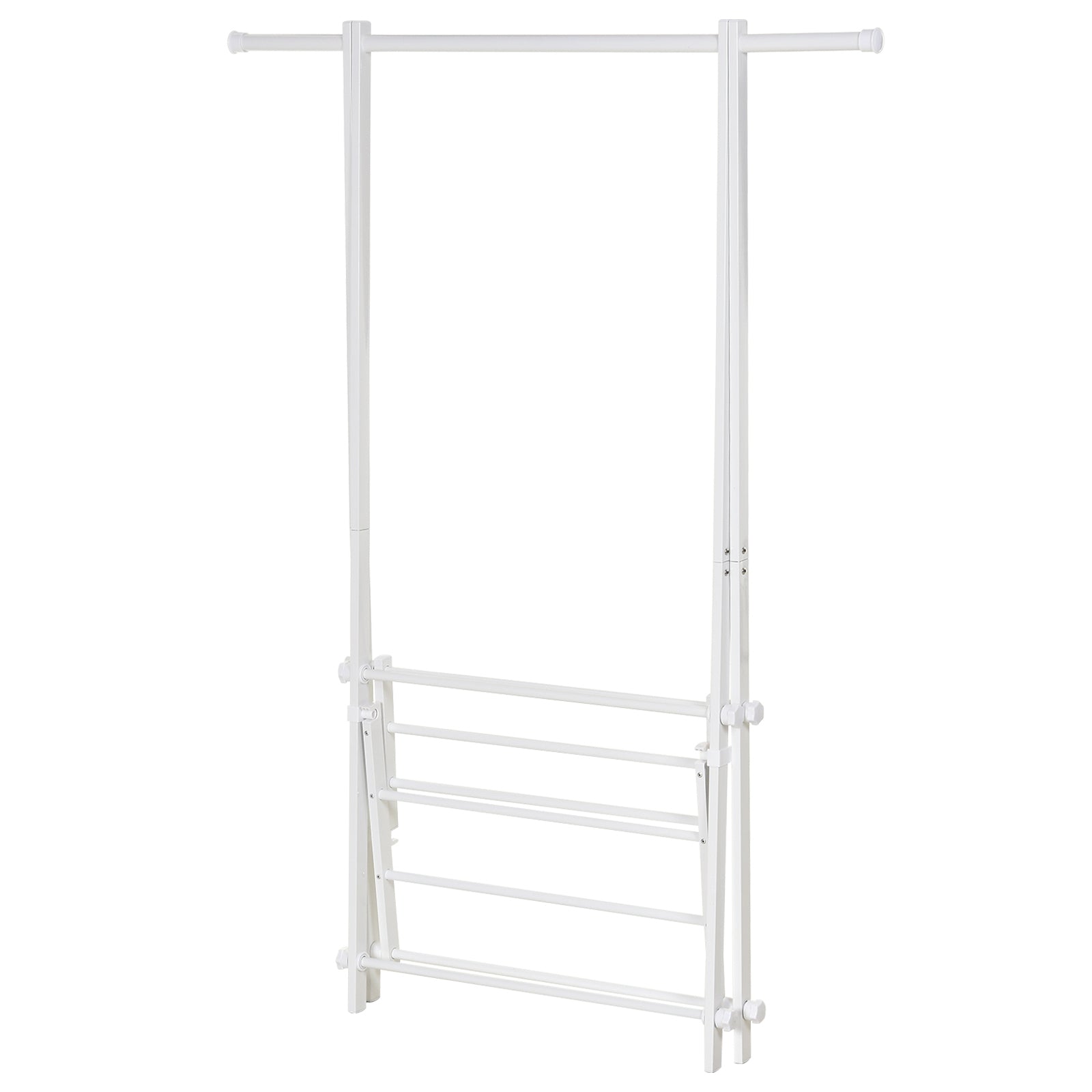 Suporte para Cabide Dobrável Suporte para Cabide com 2 Prateleiras e 1 Barras para Pendurar Roupas para Sala Quarto Entrada 107,5x45x150 cm Branco