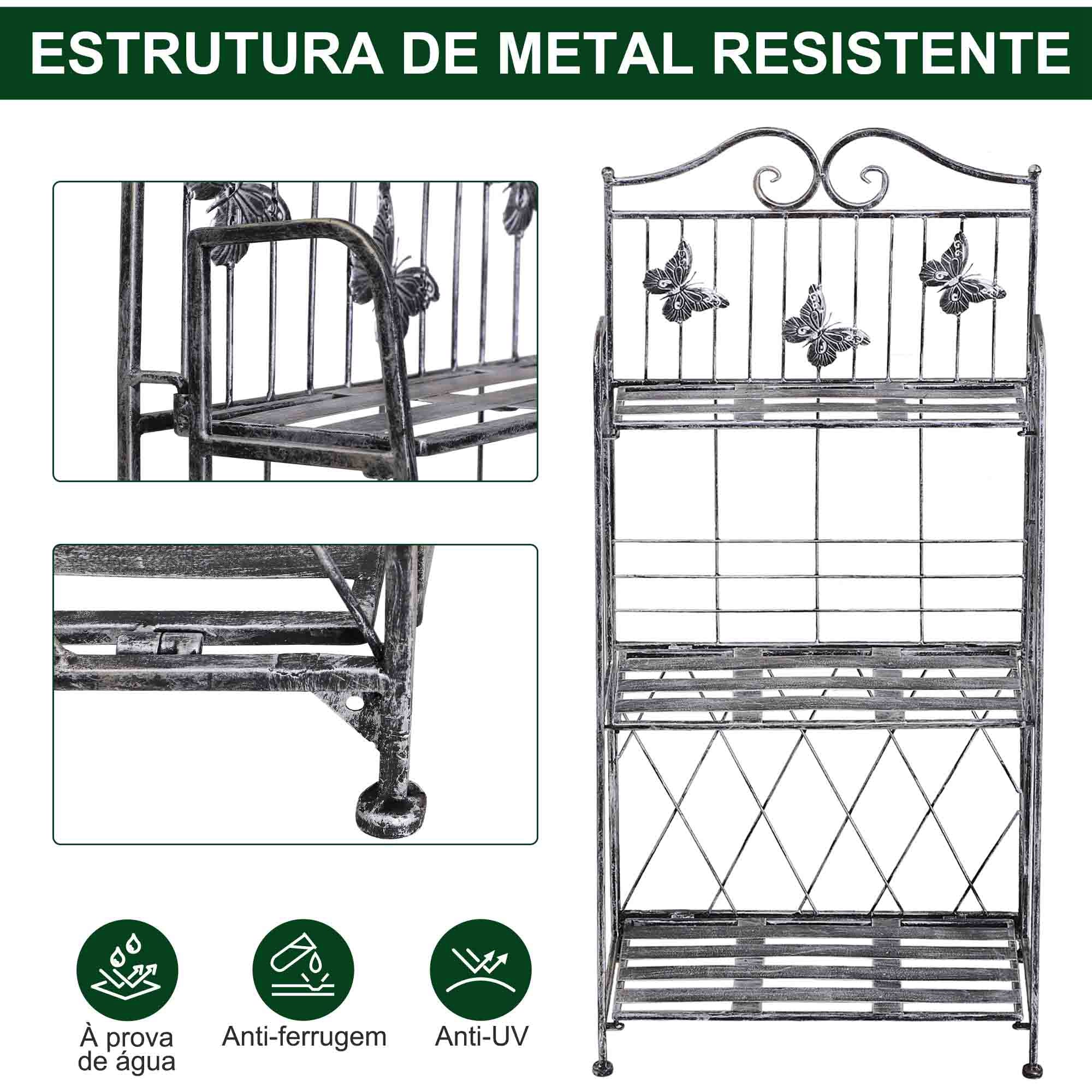 • Suporte para plantas de 3 níveis, feito de metal com detalhes forjados, robusto e elegante Com uma estrutura de metal, ideal para resistir ao vento e à chuva no exterior Graças ao seu desenho, oferece a versatilidade perfeita para ser usado como suporte para plantas, prateleira para livros, sapatos e muito mais A sua estrutura é dobrável, o que permite guardá·lo facilmente quando não estiver em uso A sua superfície lisa é fácil de limpar com um simples pano húmido É perfeito para decorar alpendres, pátios, jardins ou salas de estar Requer um montagem simples e rápida