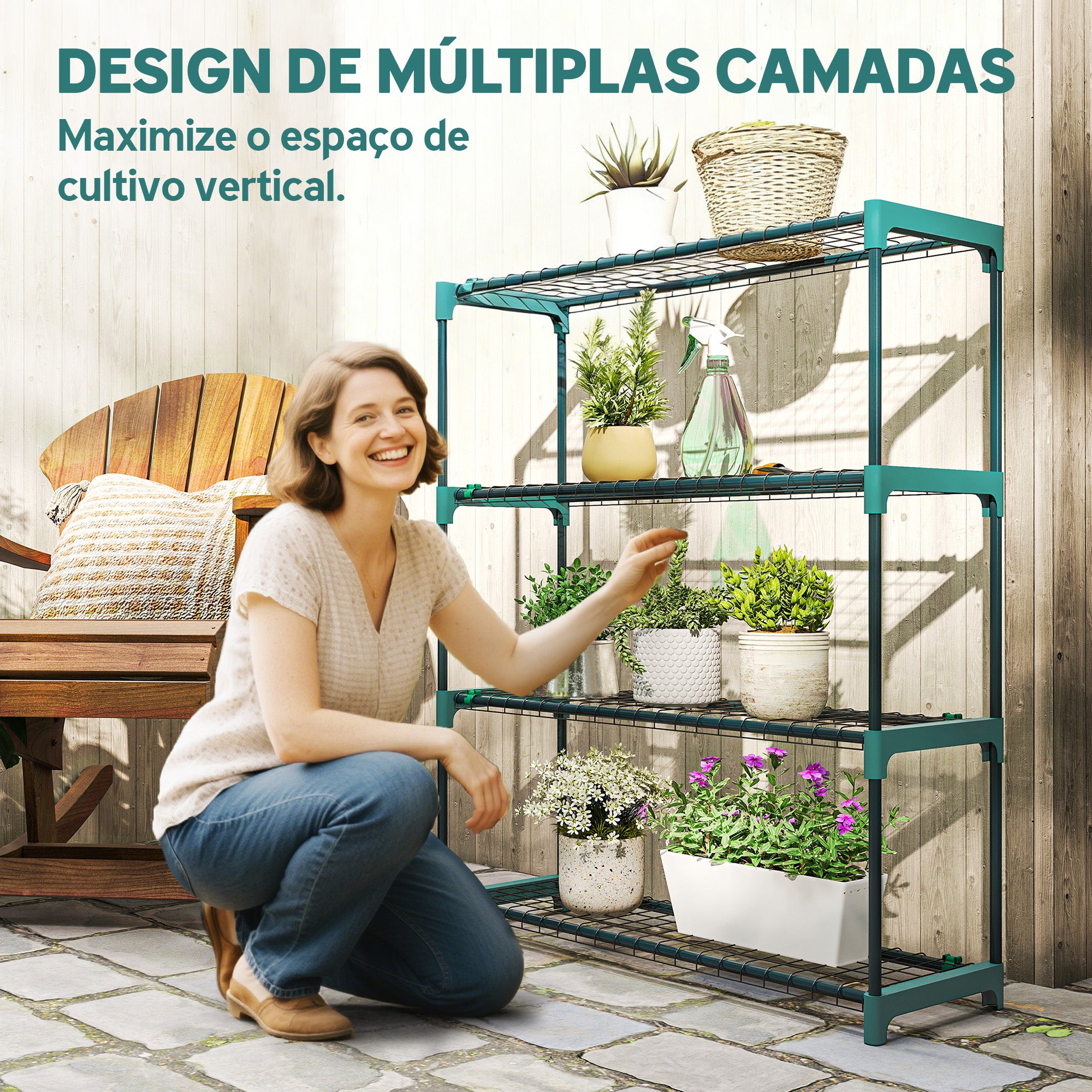 - MAXIMIZA O ESPAÇO VERTICAL: Suportes para plantas com quatro níveis espaçosos (cada um com 82x24,5 cm) permitem maximizar a área de cultivo num espaço reduzido – perfeito para pequenas varandas, pátios ou cantos interiores onde o espaço é limitado.