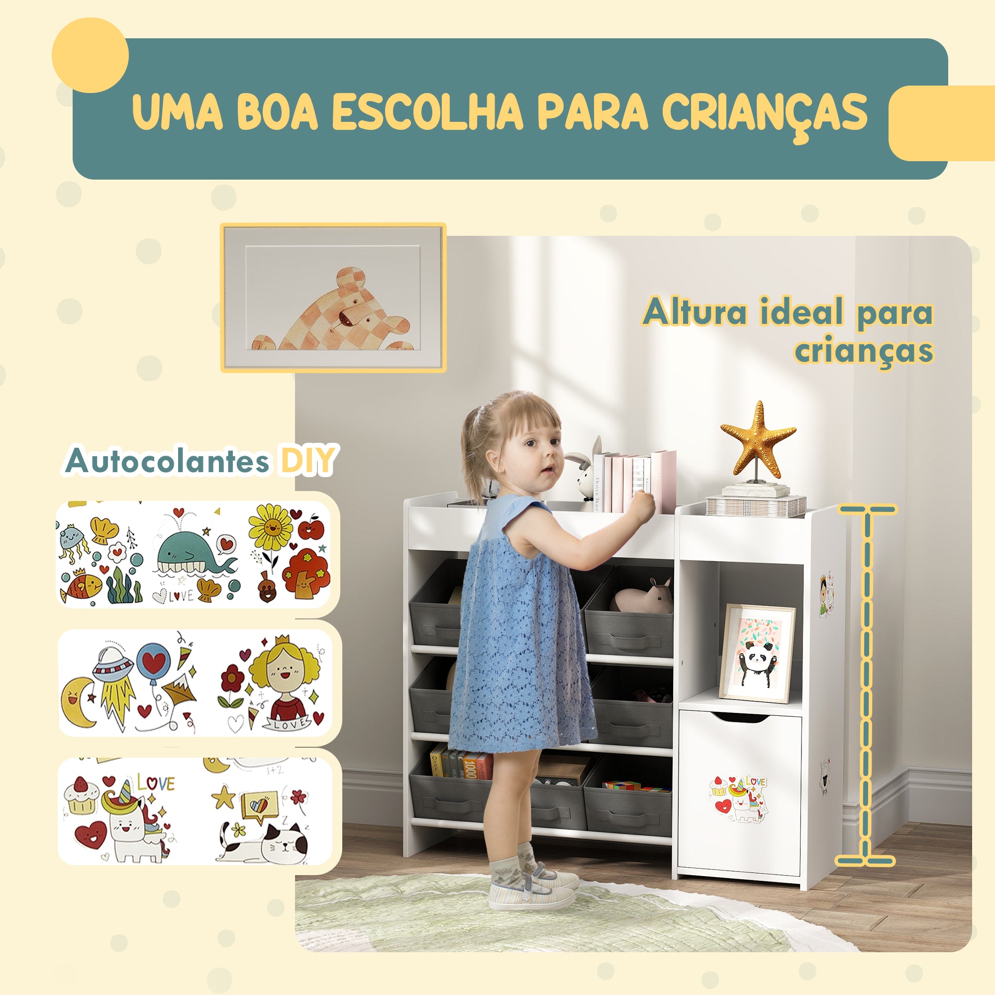 Organizador de Brinquedos para Crianças Organizador Infantil com 9 Cestos Amovíveis Compartimentos e Autocolantes para Escola Infantil Sala de Jogos 92x30x80 cm Branco e Cinza