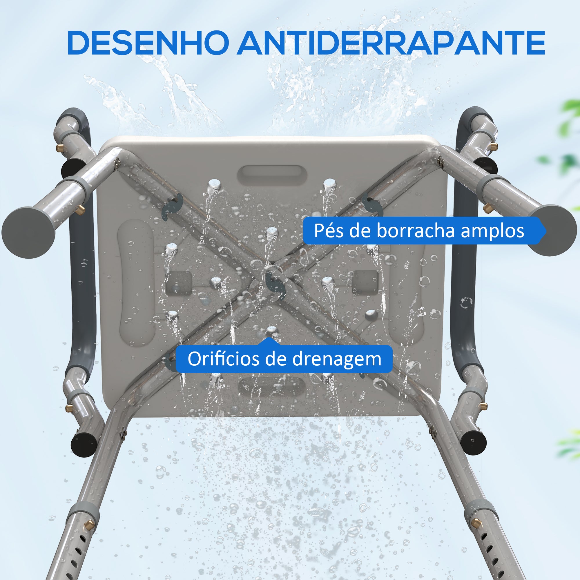Banco de Duche Cadeira de Duche para Pessoas Idosas com Altura Ajustável Cadeira de Duche de Alumínio Antiderrapante Carga 150 kg para Idosos e Descapacitados 52x45x57-69 cm Cinza