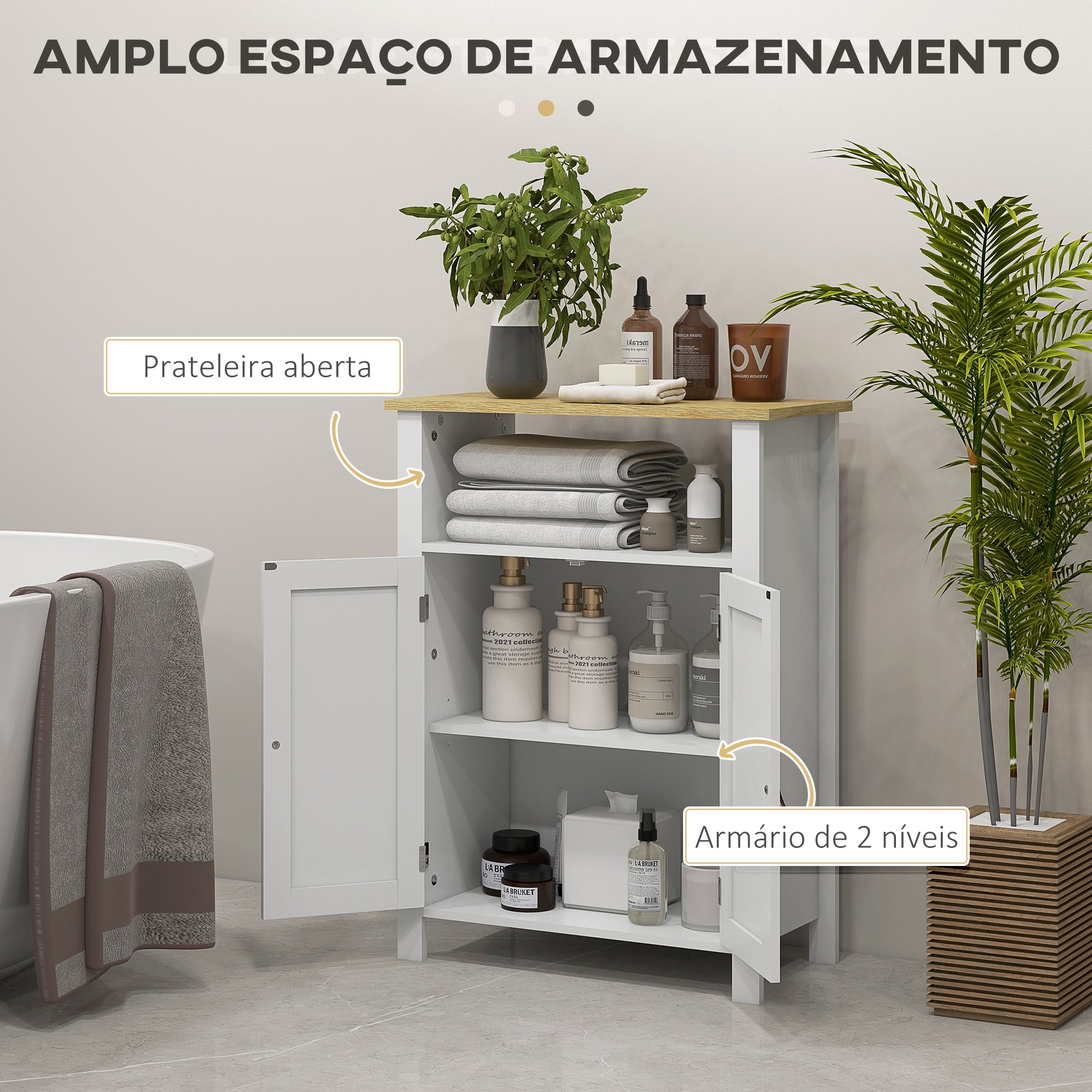 Móvel Casa de Banho Armário Casa de banho com 2 Portas Compartimento Aberto e Prateleiras Ajustáveis Móvel Auxiliar Casa de Banho Moderno 60x30x80,5 cm Branco