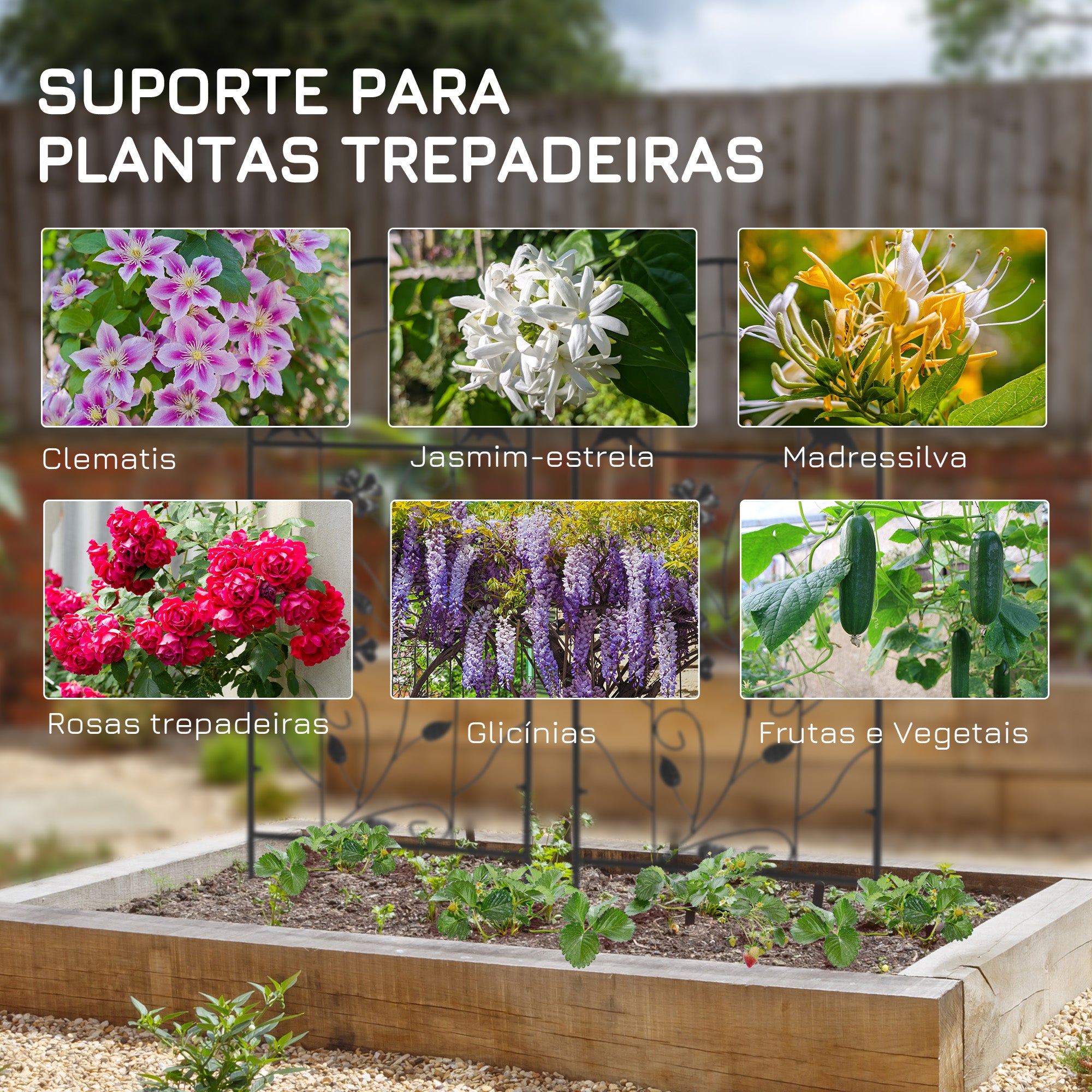 Conjunto de 2 Treliças de Jardim Suportes para Plantas Trepadeiras com Estrutura Metálica para Frutas Verduras Flores Decoração para Exterior Pátio 38x98 cm Preto