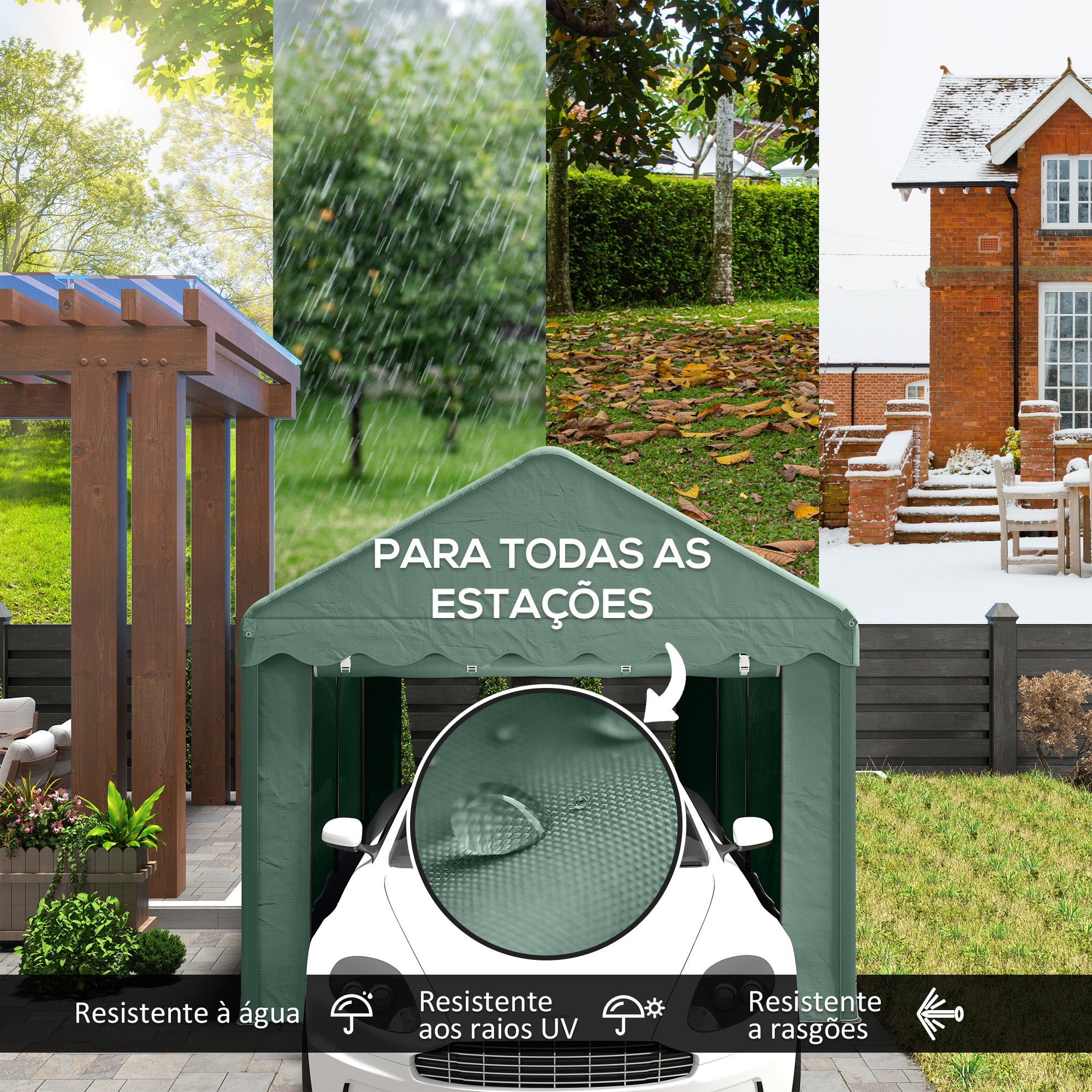 Tenda Garagem 6x3 m Tenda de Exterior para Carro Impermeável Garagem Portátil Anti-UV com Paredes Laterais Desmontáveis e 2 Portas com Fecho de Correr Verde