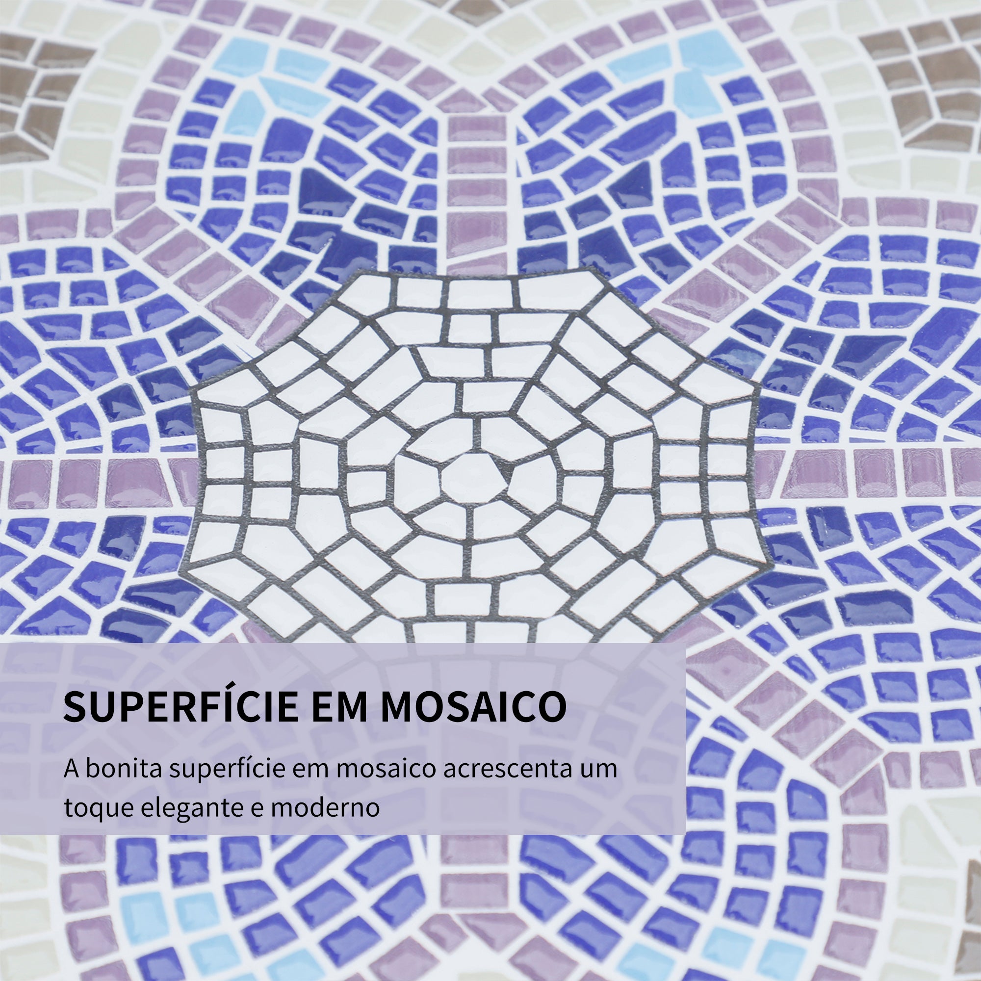 • DESENHO EM MOSAICO: Esta mesa auxiliar de jardim possui uma elegante bancada em mosaico, que combina peças coloridas para criar um padrão único e vibrante. Ideal para embelezar o seu espaço exterior, seja na varanda, pátio ou área de lazer