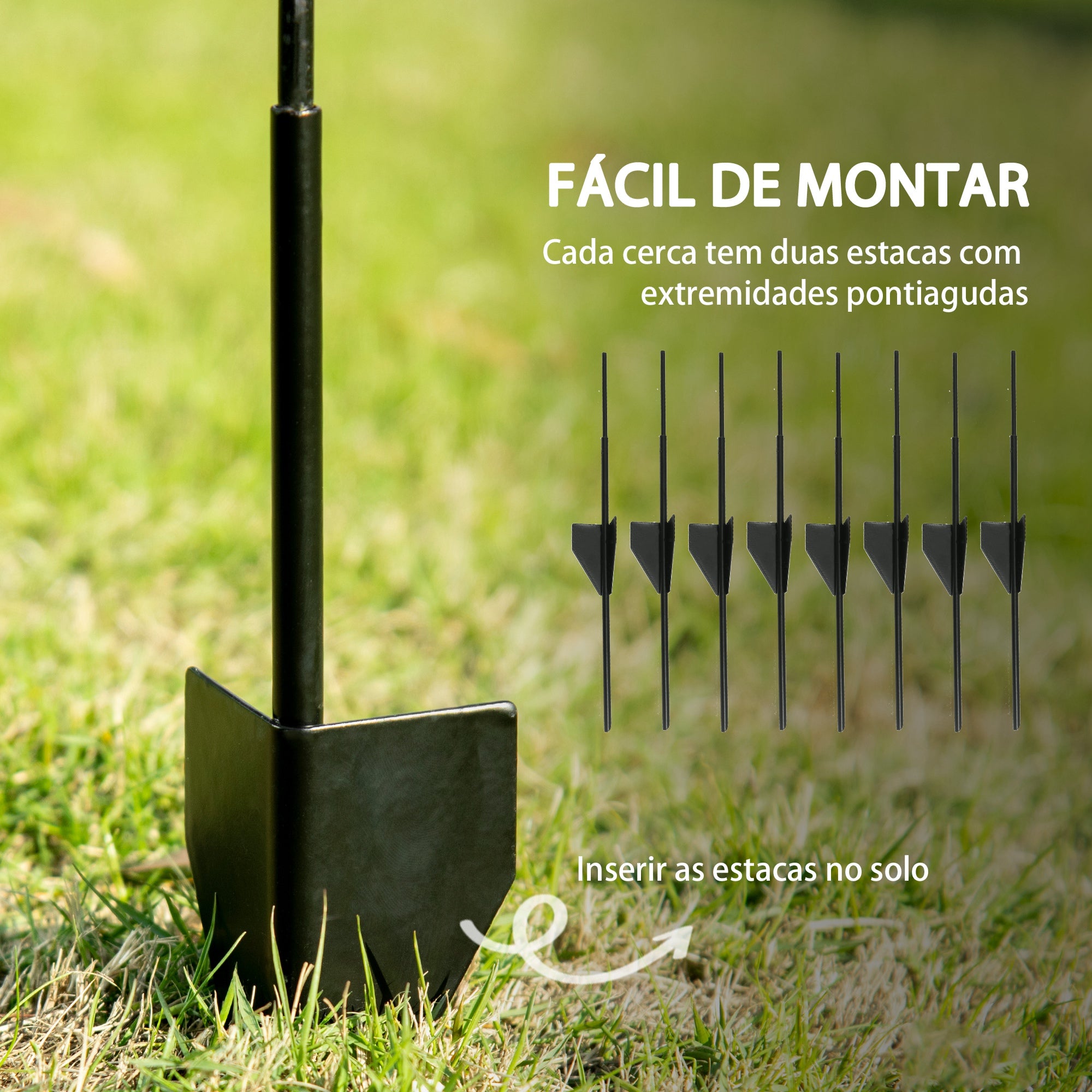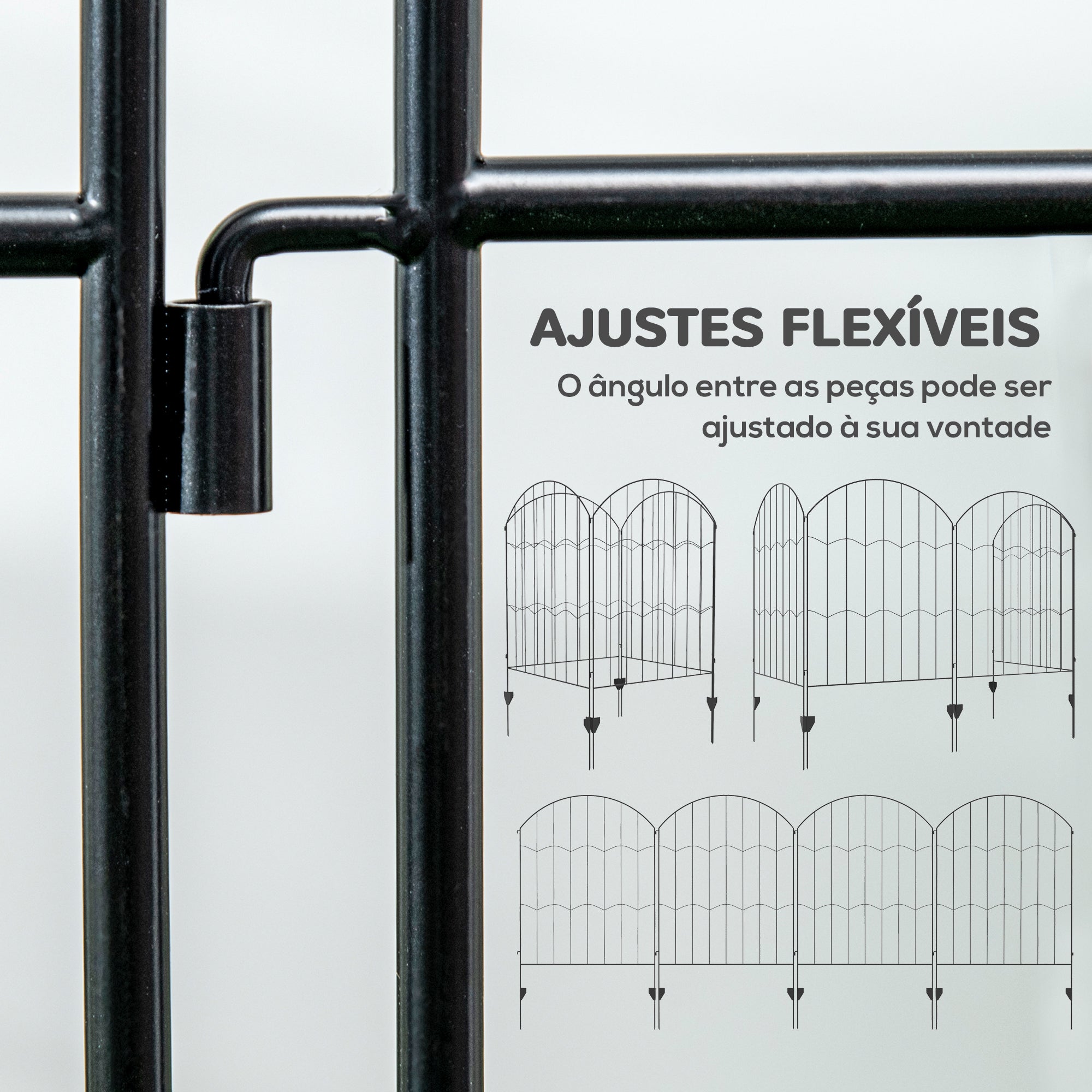 • MEDIDAS TOTAIS: 348x0,8x110 cm (CxLxA). Medidas de cada painel: 88x0,8x110 cm (CxLxA). Requer uma fácil montagem Se quer ter uma cerca bonita e prática, esse produto da Outsunny é ideal. Esta cerca externa possui estacas de solo, que podem ser inseridas no solo ou na grama para facilitar a instalação. A linha curva e o padrão elegante conferem·lhe um toque de charme e modernidade. Pode ser usado como cerca de jardim, divisória de ambiente, barreira para animais ou simplesmente como decoração. Mantenha as suas flores ou jardim seguros com está cerca de jardim lindamente projetada da Outsunny