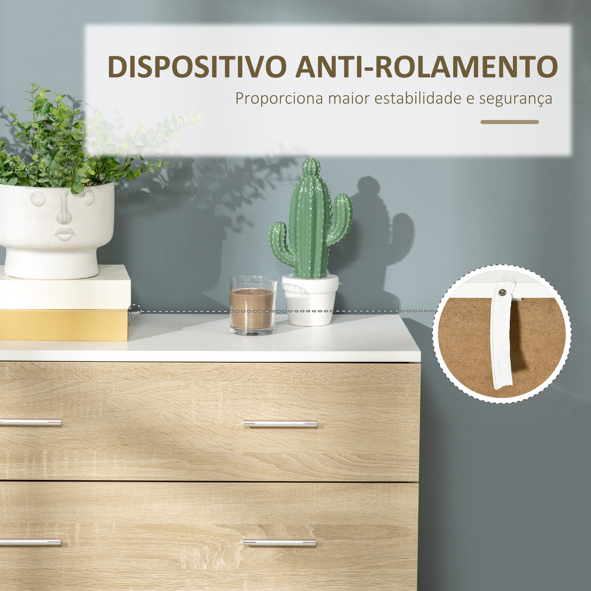 Cómoda com 4 Gavetas Cómoda Auxiliar de Armazenamento Moderna para Dormitório Corredor Sala de Estar 76x35x72cm Carvalho e Branco