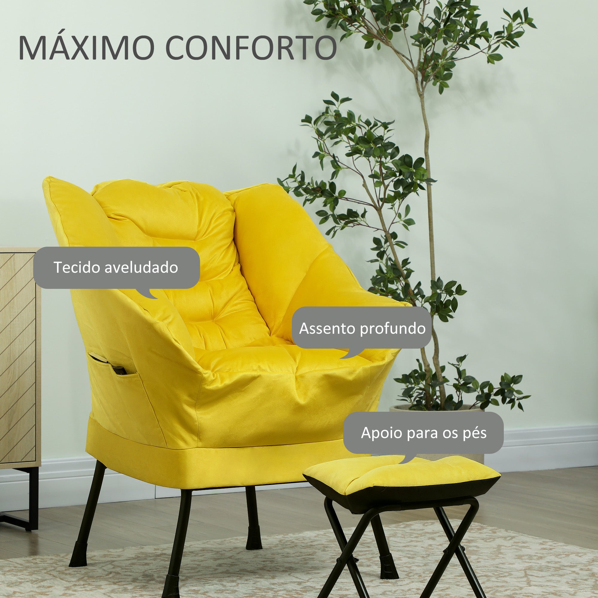 Poltrona Sala de Estar com Apoio para os Pés Poltrona Relax para Leitura com Bolsos Laterais e Pés de Aço para Sala de Estar Dormitório 80x78x100 cm Amarelo