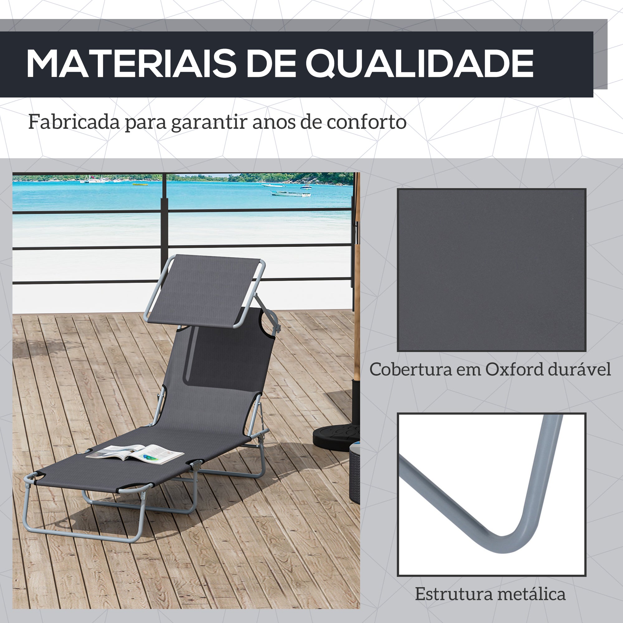 Espreguiçadeira Dobrável Cinzento Oxford Ferro 187x58x27 cm