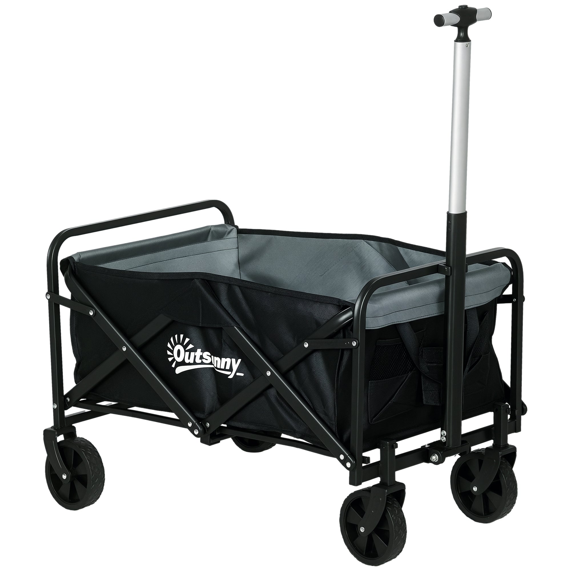 Carrinho de Transporte Carrinho Dobrável com 4 Rodas Manípulo Ajustável Capacidade 70 L Carga 80 kg para Jardim Praia Campismo Preto