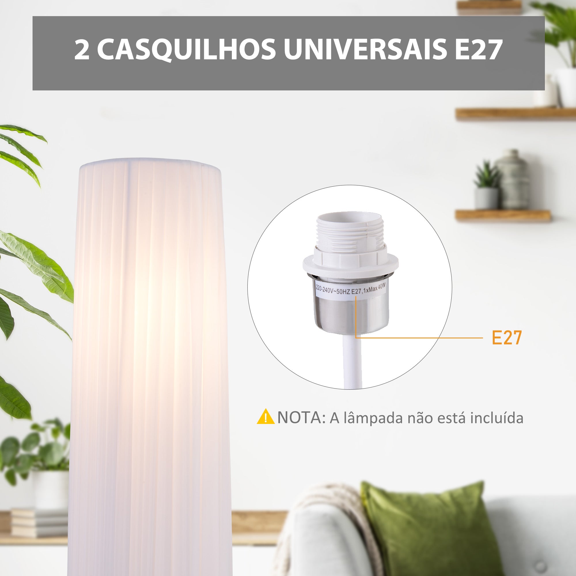 - Projetado para lâmpadas E27 (lâmpada não incluída).