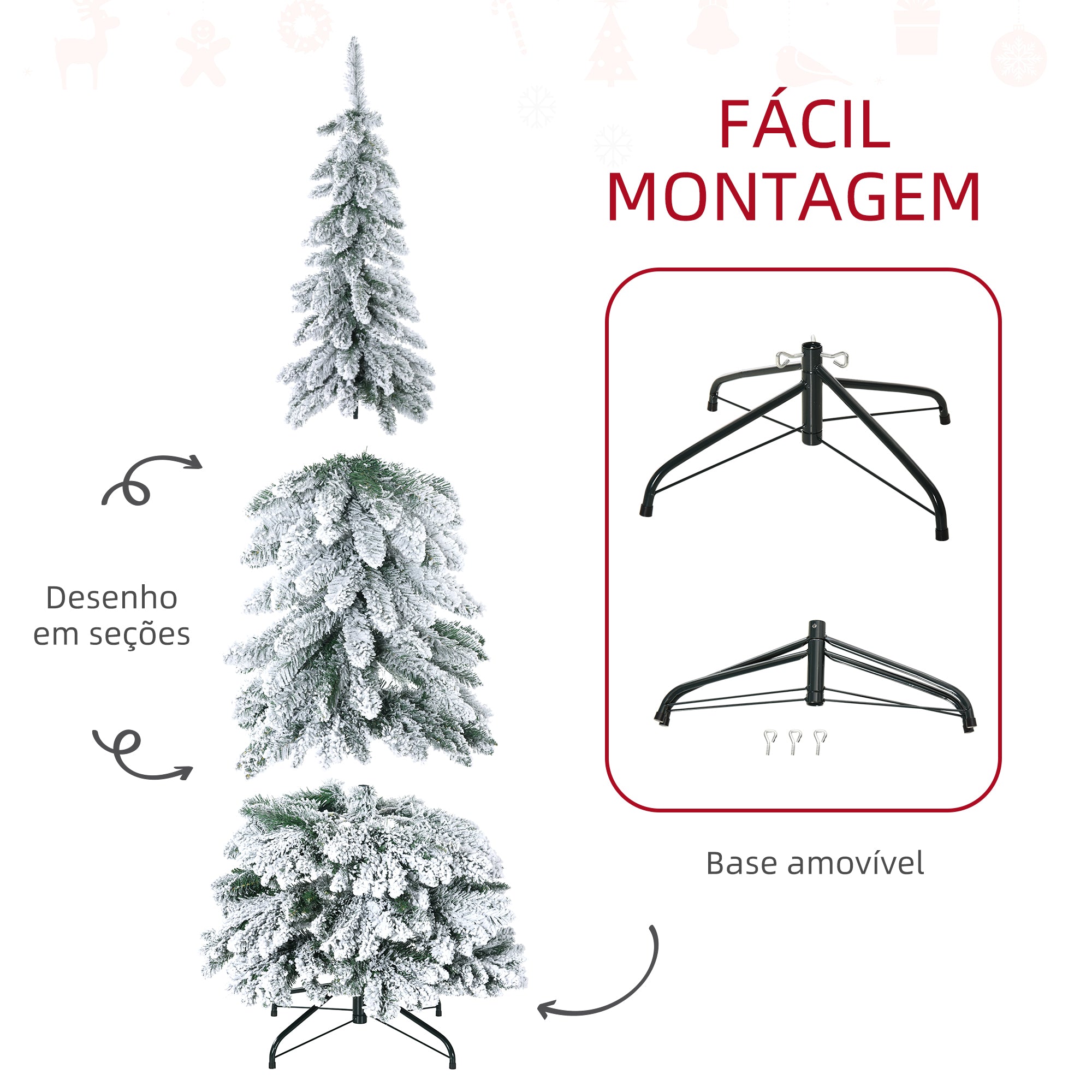 - Árvore de Natal artificial de 180 cm, com aspecto natural e realista Apresenta um visual nevado para criar uma atmosfera natalina perfeita Com 523 ramos realistas e fáceis de configurar Seu desenho estreito e alongado em forma de lápis permite desfrutar de uma árvore de tamanho considerável sem ocupar tanto espaço Fabricado em seções para facilitar a montagem, desmontagem e armazenamento Base de aço forte ideal para uso prolongado Apenas para uso interno, não para uso externo Requer montagem simples e rápida