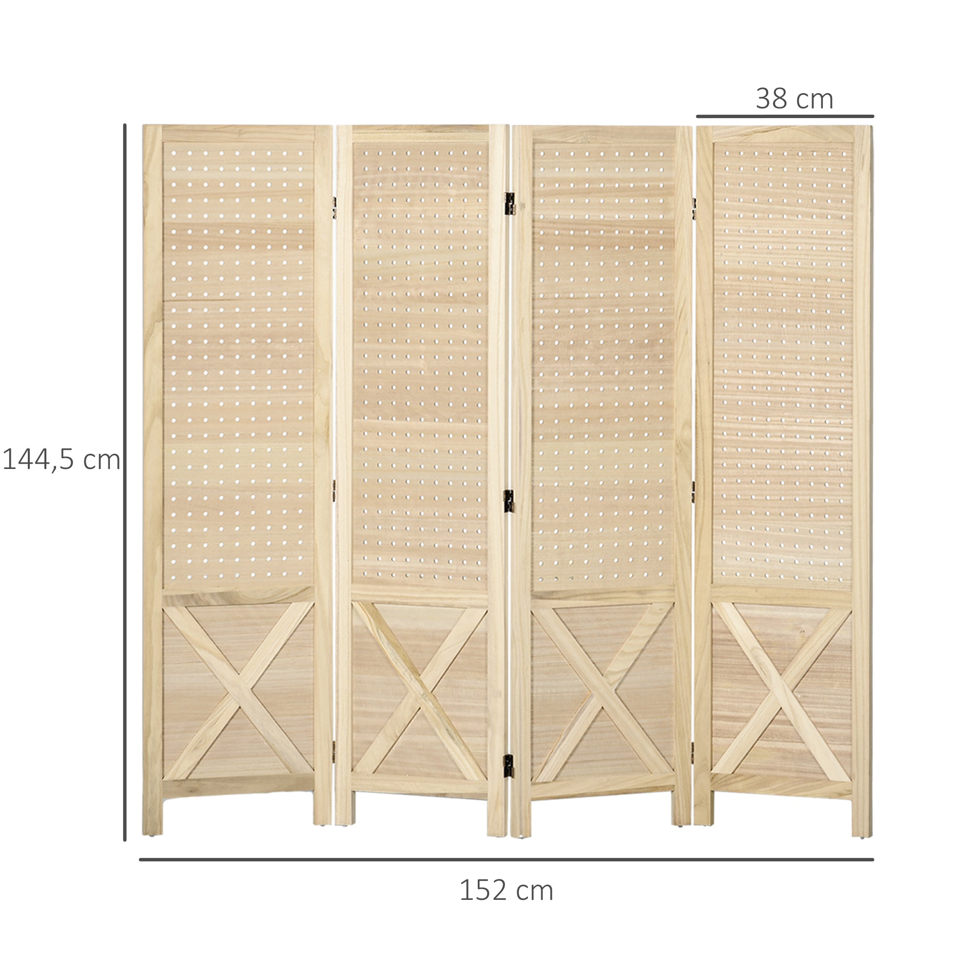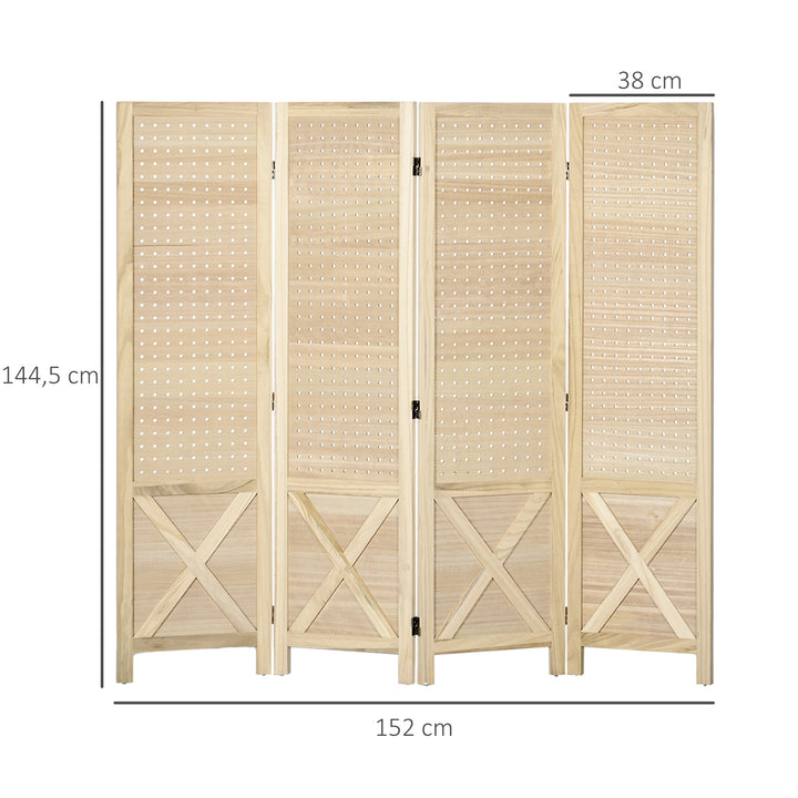 Biombo de 4 Painéis Separador de Ambientes Dobrável 152x1,7x144,5 cm Divisor de Habitações Painéis com Orifícios para Pendurar para Escritório Dormitório Sala de Estar Madeira