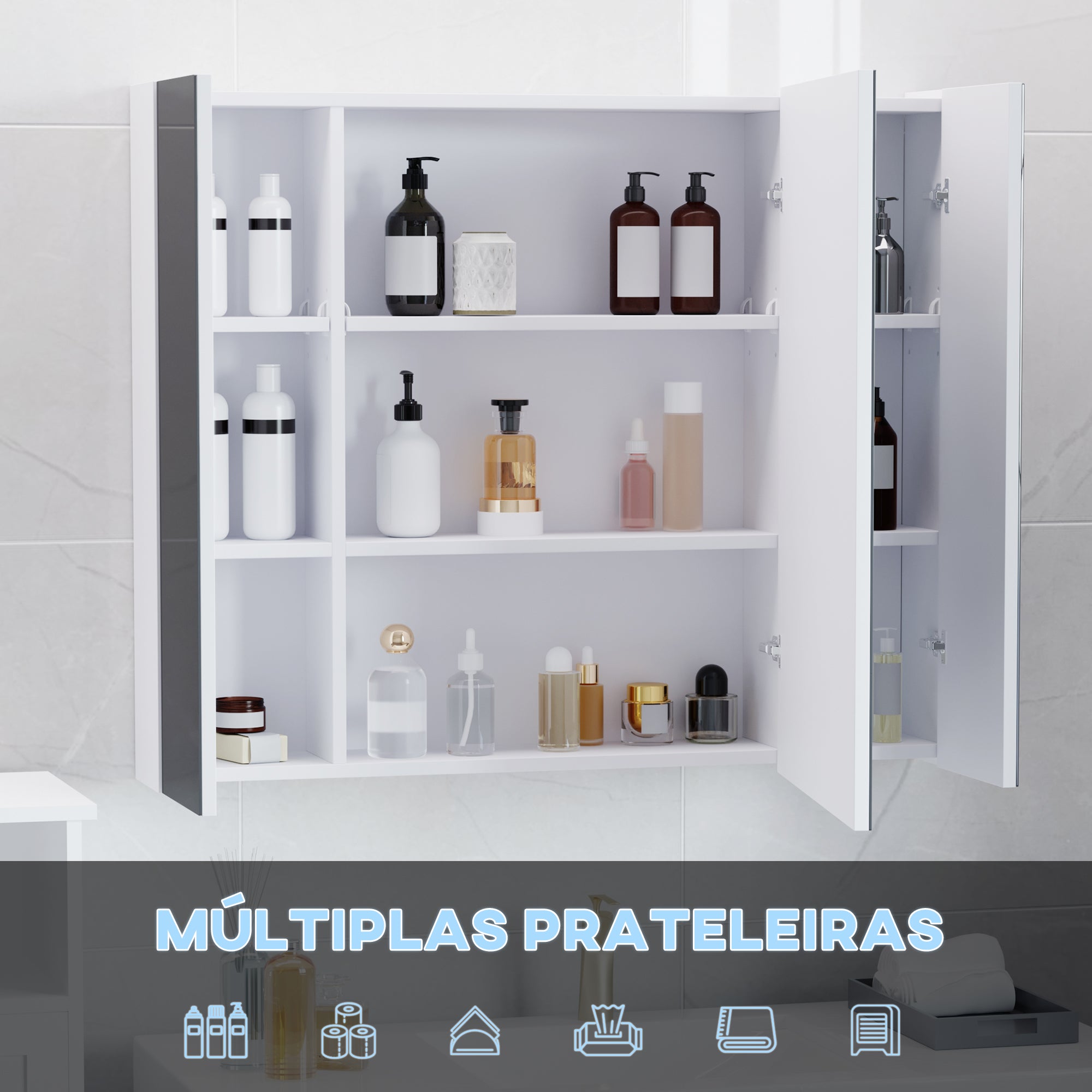 - Este móvel de casa de banho de parede possui um espelho iluminado ideal para os cuidados do dia a dia Possui iluminação LED branca de 6500K, alimentada por USB Possui um controlo tátil inteligente que lhe permite ajustar o brilho das luzes LED A função de memória recorda a última definição de brilho As prateleiras são ajustáveis em 3 níveis, perfeitas para objetos de diferentes tamanhos As várias prateleiras permitem·lhe organizar os seus objetos de forma eficiente O desenho de montagem na parede poupa espaço e é fácil de instalar Montagem necessária